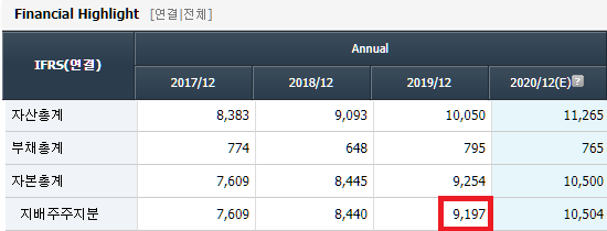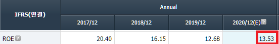 2020년 4월 10일 현재 BBB- 등급 채권의 5년 수익률은 7.91%다. 다음으로 자기자본과 ROE를 구한다. 재무데이터를 가공해서 증권사에 제공하는 업체인 FnGuide의 홈페이지에 접속한다.