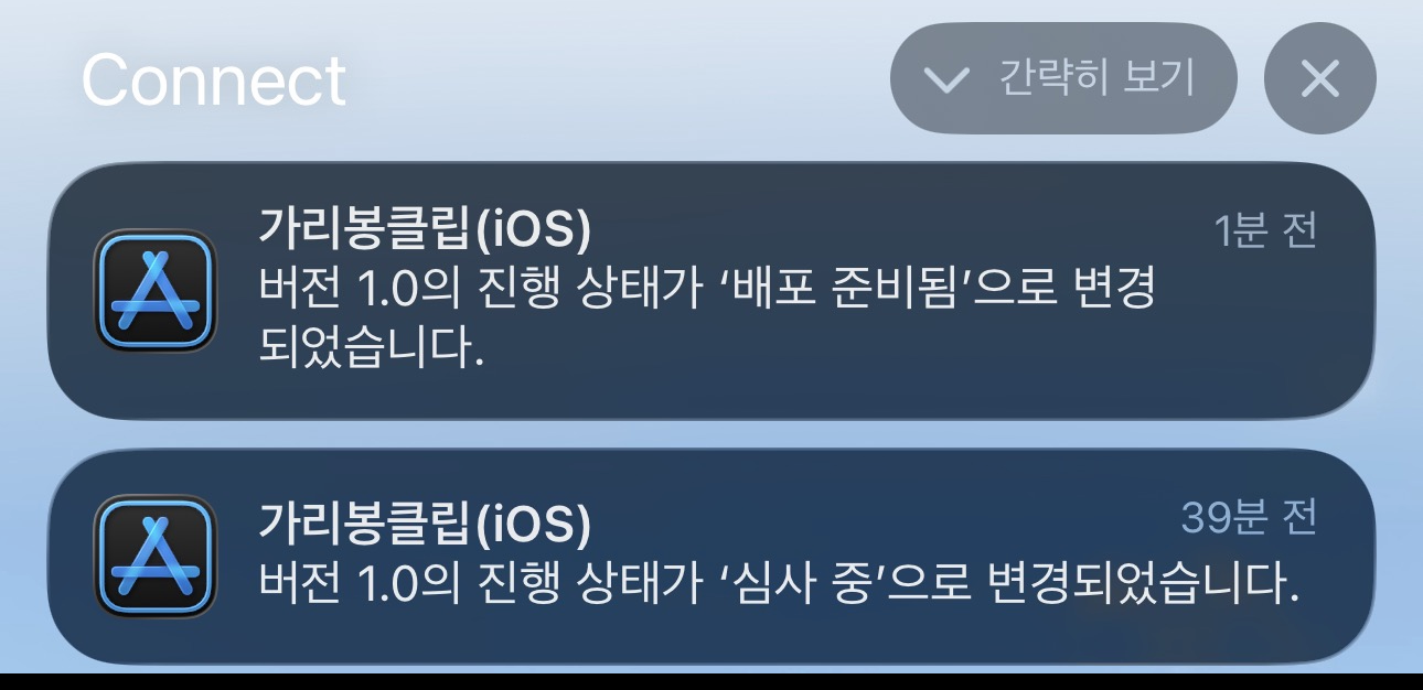 지하철로 이동 중에 App Store Connect 앱 알림이 와서 기념으로 한 장 캡처했다. 알림 토스트 위에 있는 음악 재생 표시는 어제 새로 만든 라디오 앱이다. 이것도 좀 다듬어서 스토어에 올릴 예정이다.