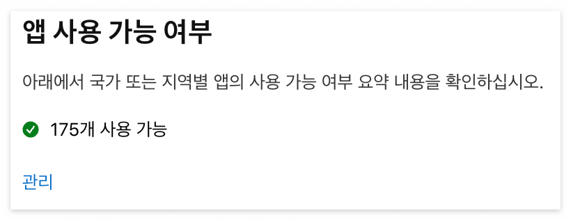 웬일인지 '앱 사용 가능 여부' 항목이 비어 있는 상태였다. '사용 가능 여부 설정'을 클릭해서 나타난 팝업에서 175개국 전부 출시를 선택했다.