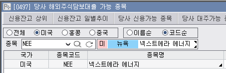 참고로 '넥스테라 에너지'는 한국투자증권에서 담보대출이 가능한 종목이다. 담보대출 가능 여부를 확인하는 방법은 아래 포스트에 정리해 놨다. 다른 증권사도 크게 다르지 않을 듯하다.