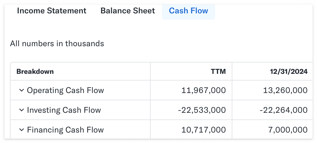 마지막으로 Cash Flow(현금흐름표)를 살펴보겠다.