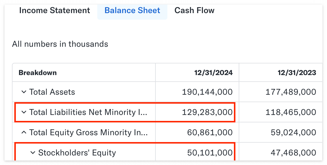먼저 Balance Sheet(재무상태표) 탭에서 유동비율, 당좌비율, 부채비율을 확인해 보겠다.