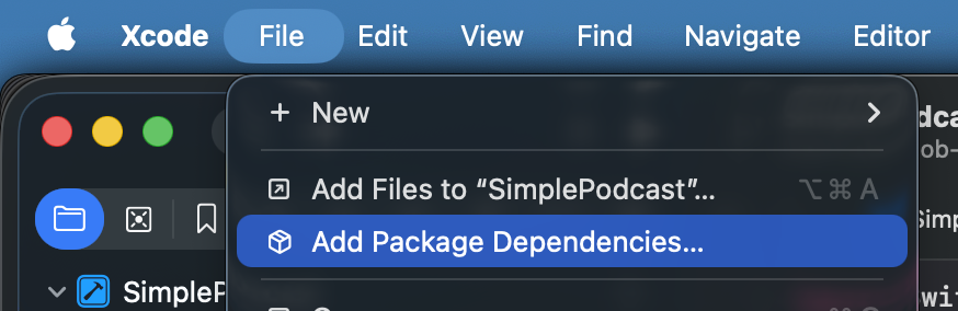 1. File → Add Package Dependencies