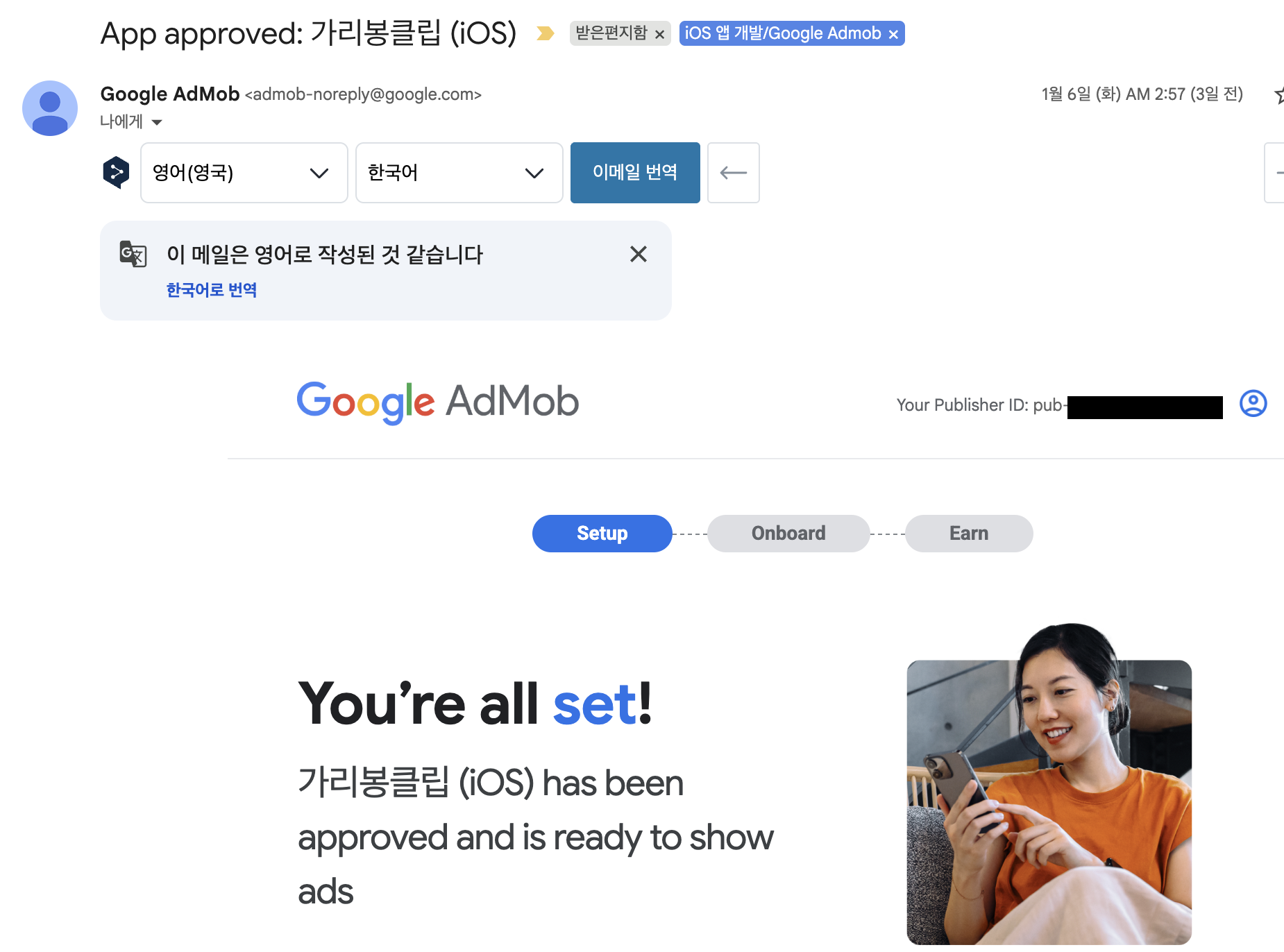앱 인증이 완료됐다는 메일이 왔다. 끝.