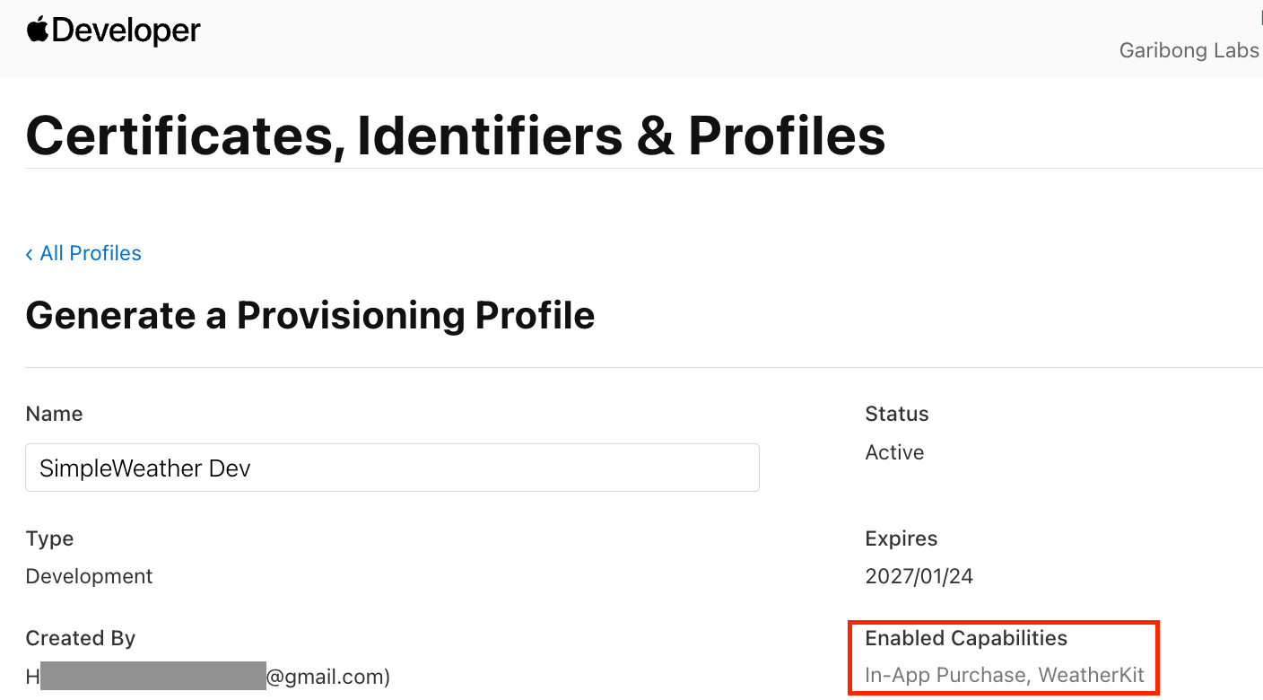 WeatherKit Capability 활성화, Provisioning Profile 생성