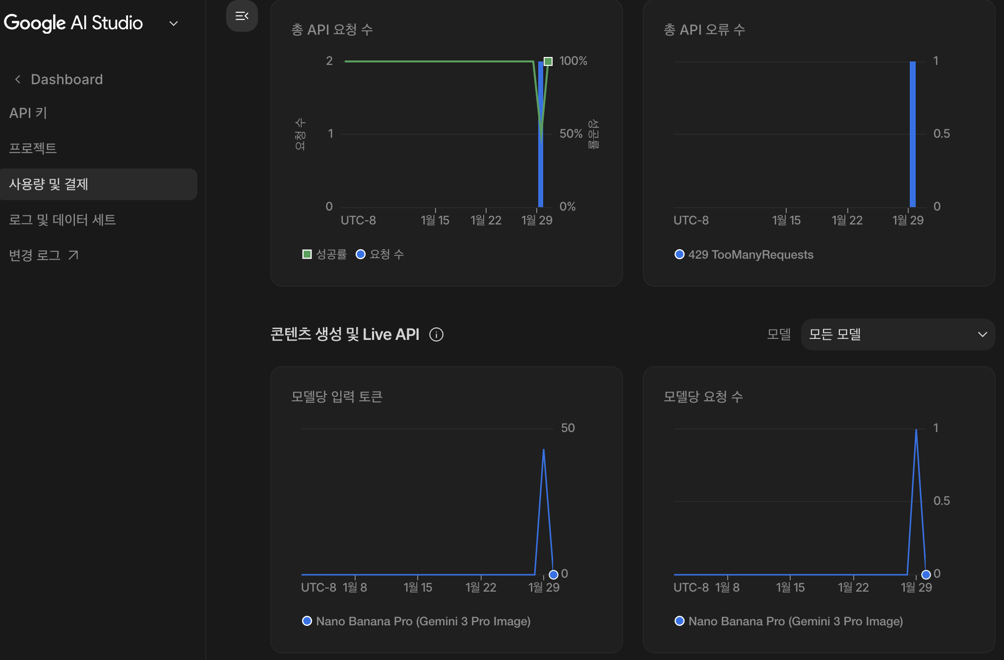 Google AI Studio의 대시보드 상에서 Nano Banana를 사용해서 이미지를 생성한 기록을 확인할 수 있었다. 이제 앱 개발에 Claude + Gemini 조합을 쓸 수 있게 됐다. 아직 Google Cloud API 무료 크레딧이 꽤 남았지만 비용 관리에 신경 써야겠다. 끝.