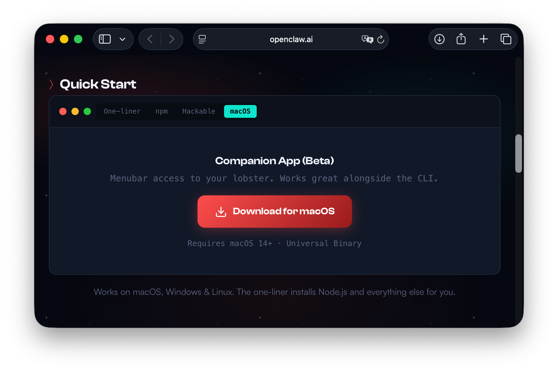 베타 버전이고 아직은 OpenClaw CLI가 중심에 있는 이 글의 성격에도 맞지 않아 실제 설치는 진행하지 않고, 여기서 멈춘다. 추후 별도 포스트에서 다룰 예정이다. 그런데 macOS 앱은 그렇다 치고 우리가 설치하려는 OpenClaw와 OpenClaw CLI가 같은 것을 가리키는 말일까? 이것도 한번 정리하고 가야 할 것 같다.