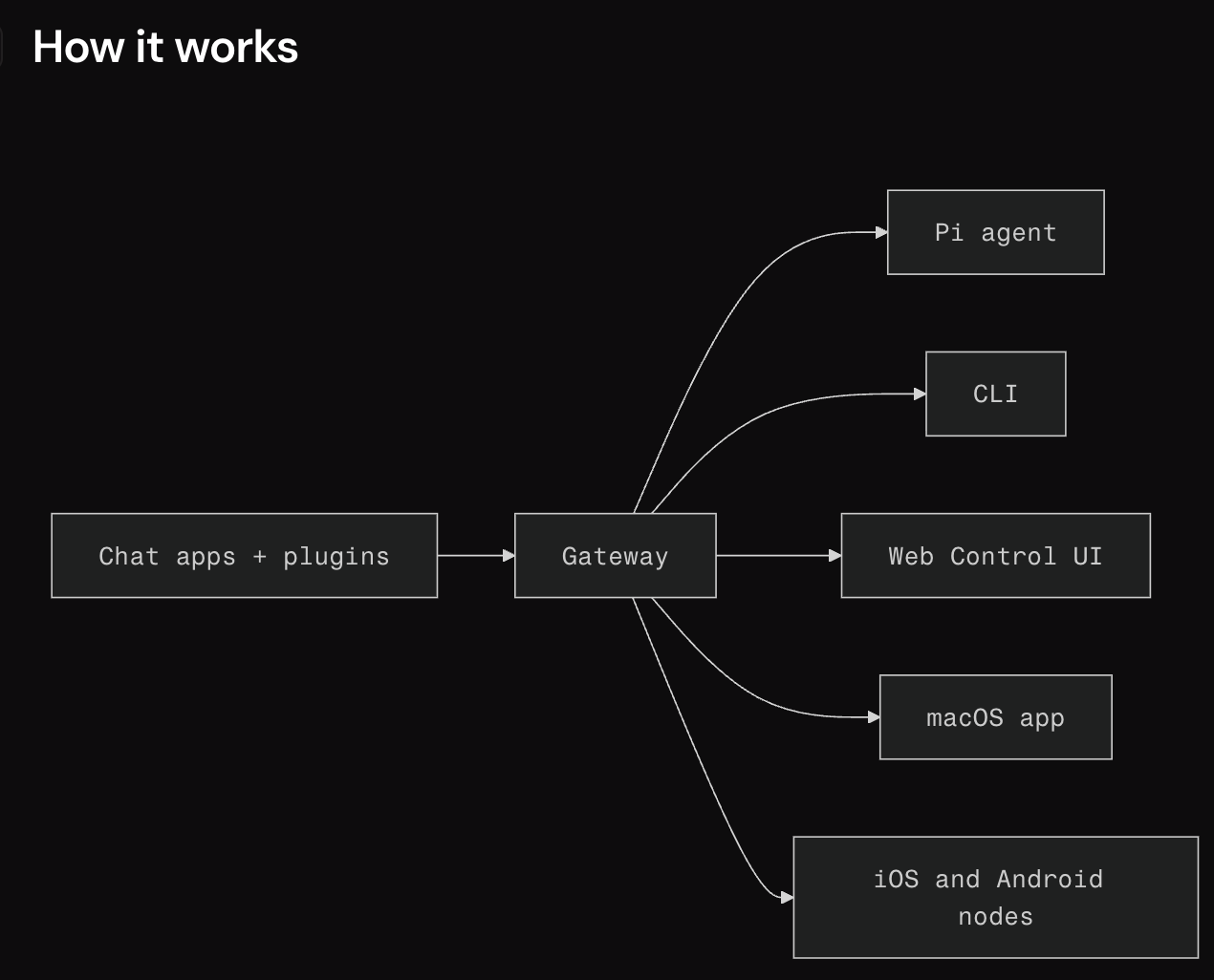 - macOS 앱 : 사람이 Gateway와 소통하는 GUI 인터페이스