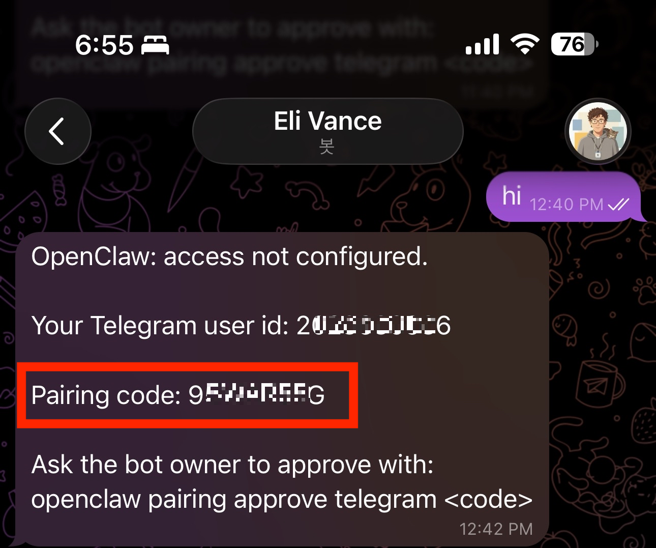 openclaw pairing approve telegram <Pairing code>