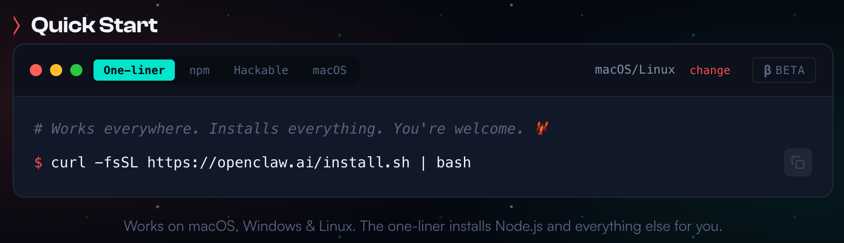 설치는 아래 OpenClaw 공홈(이번엔 진짜!)의 'Getting started - OpenClaw'를 참고해서 진행했다. 거의 깡통 수준의 맥미니에 설치하다 보니 문서에는 없는 사전 준비 작업이 좀 필요했다. 이 부분을 포함해서 OpenClaw 설치 과정을 정리해 봤다.