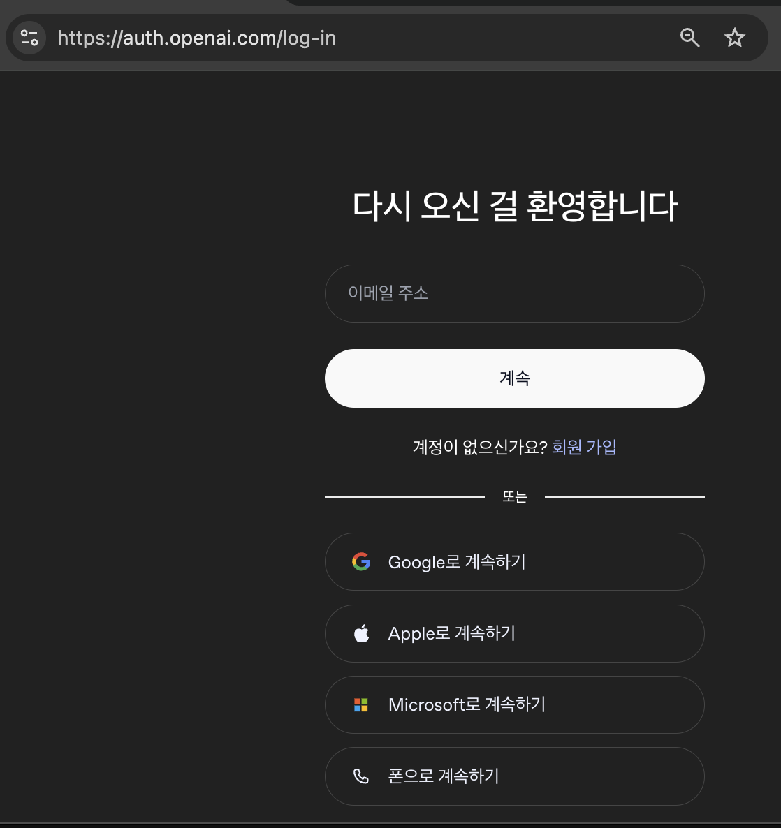 브라우저가 열리면서 ChatGPT 계정 인증 화면이 뜬다.