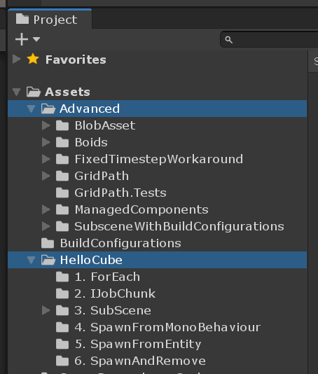 샘플 프로젝트는 https://github.com/Unity-Technologies/EntityComponentSystemSamples 에서 받아볼 수 있다. 샘플 프로젝트의 예제는 총 일곱 개다. HelloECS 폴더에 여섯 개, Advanecd 폴더 아래 한 개가 들어..