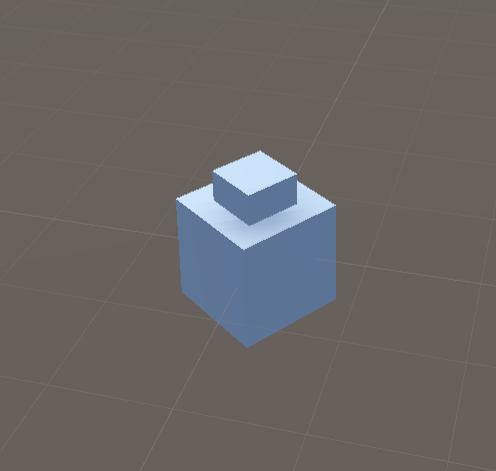 ForEach 씬(scene)을 열면 씬 뷰에 커다란 정육면체(cube) 위에 작은 정육면체가 붙어 있는 메쉬 덩어리가 보인다. 씬 뷰에서 재생 버튼을 누르면 오브젝트가 Y축 방향으로 회전하는 것을 볼 수 있다.