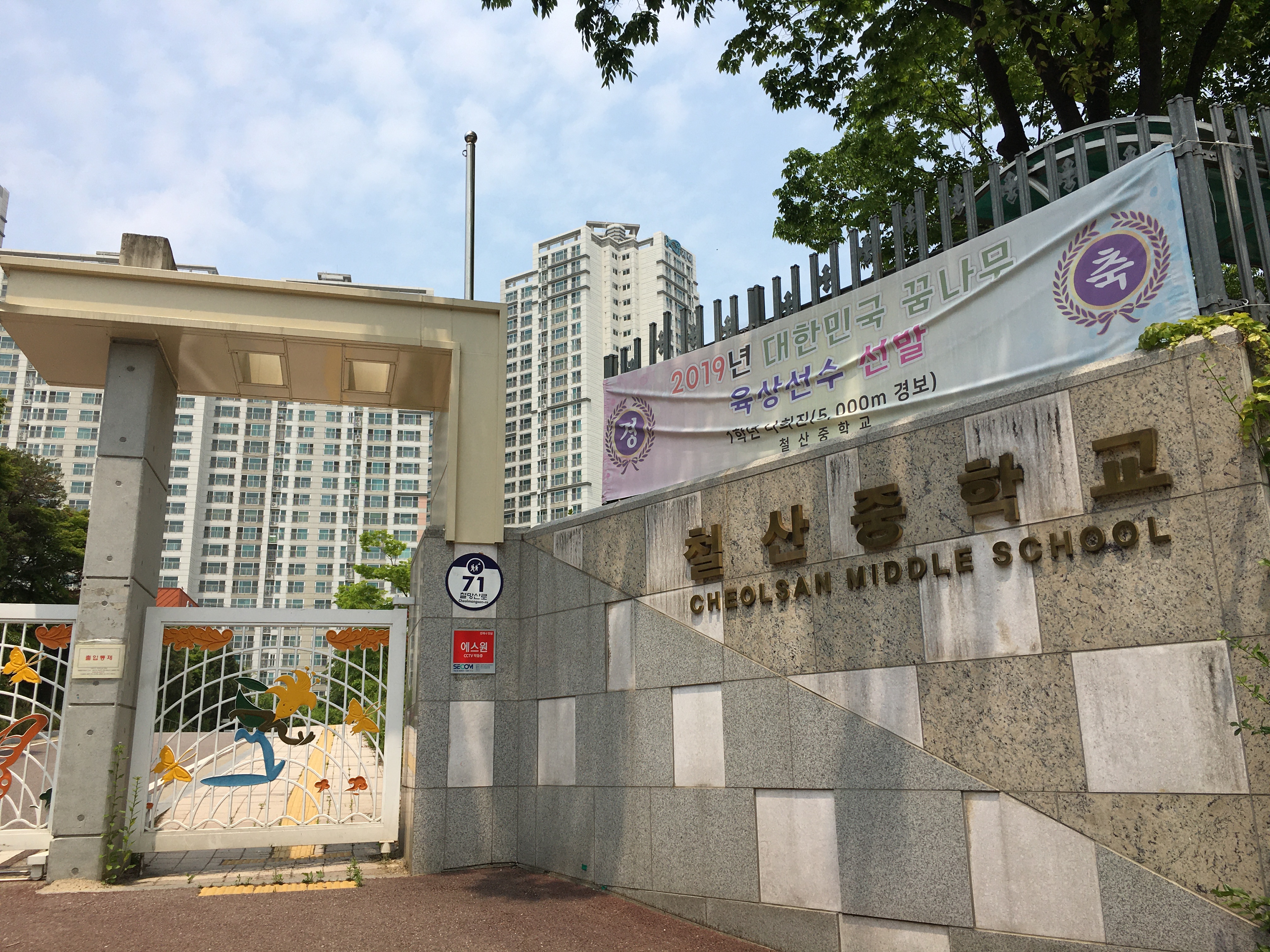 대형 마트 세이브존과 아까 철산래미안자이에 봤던 철산중학교 앞을 지났다.