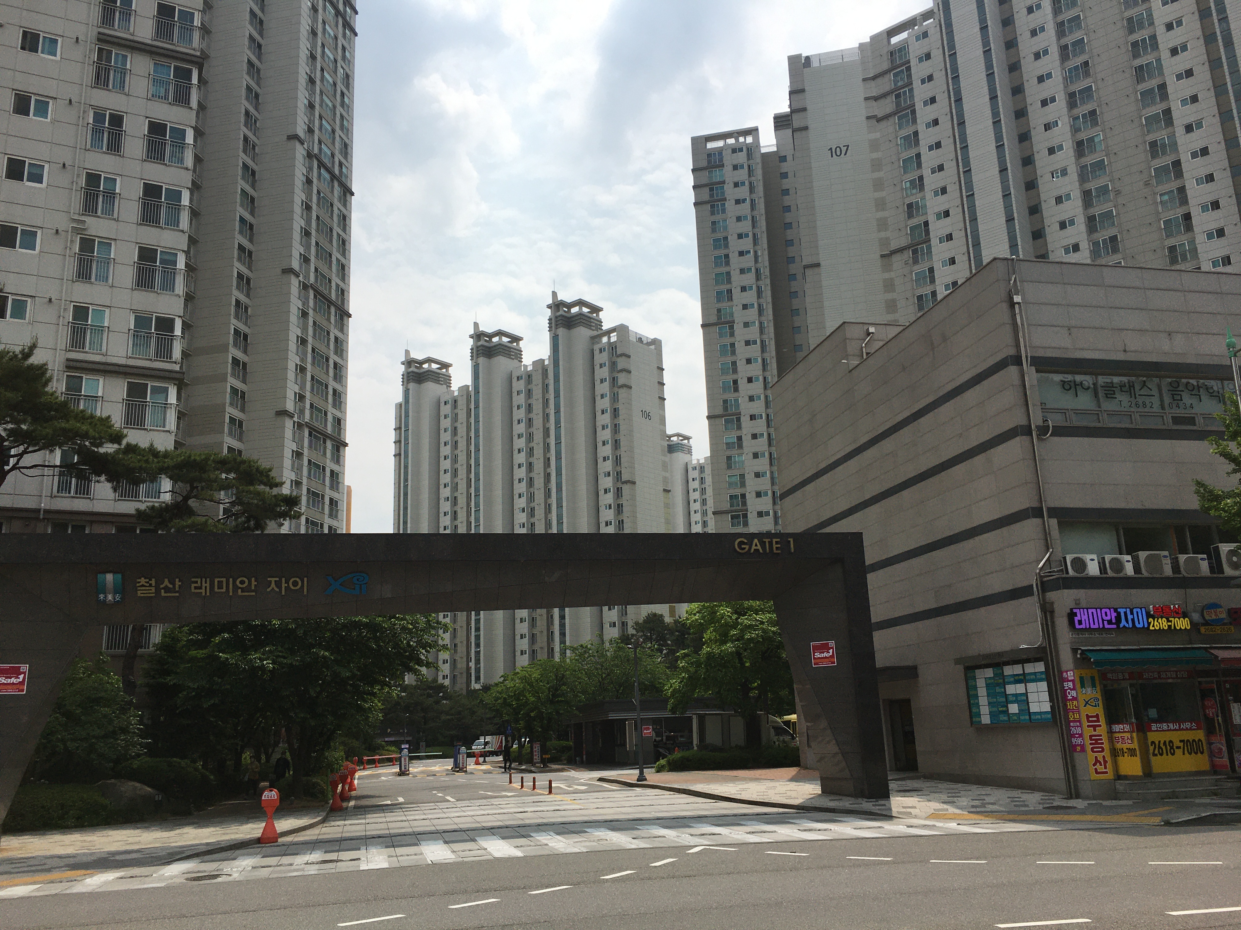 부동산 사장님과 약속한 시간보다 두 시간 전에 출발했는데 시간이 아슬아슬했다. 거의 뛰다시피 해서 첫 번째 목적지인 '철산래미안자이' 아파트로 갔다. 이 아파트는 2009년에 준공됐고 17개동 2,072세대가 거주하고 있다.