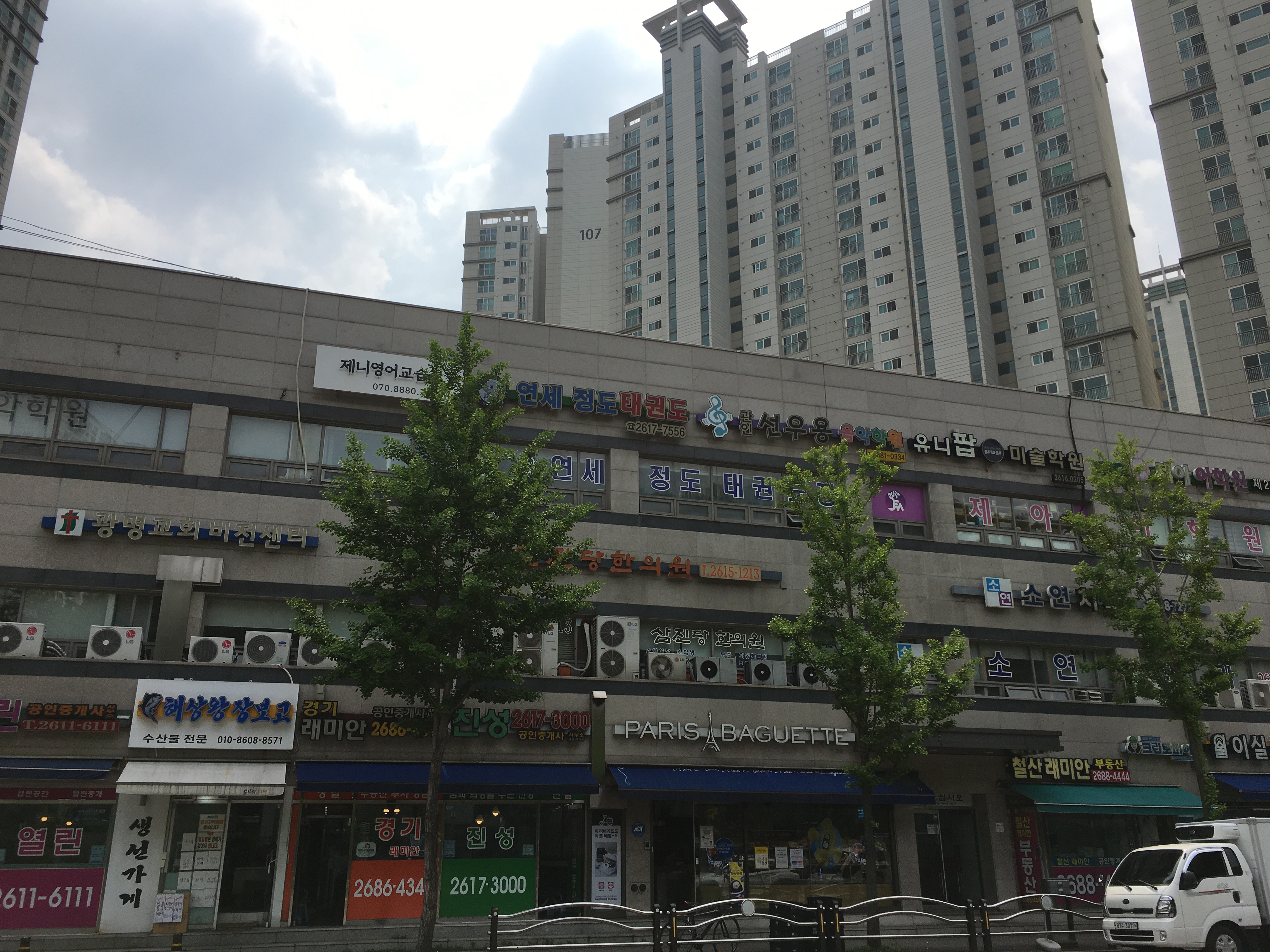 '광명두산위브트레지움' 아파트에 도착했다. 철산역에서 그리 멀지 않지만 행정 구역상 하안동에 속한다. 이 아파트도 2009년에 준공됐고 9개 동 1,248세대로 이뤄져 있다. 철산래미안자이보다 규모는 약간 작지만 조경이 상당히 잘 돼 있었다. 따로 부동산 예약을 하지 않아 집 내부는 보지 못했다. 무엇보다 배가 고파서 눈에 잘 들어오지 않았다. 점심을 먹기 위해 철산역 근처 번화가로 이동했다.