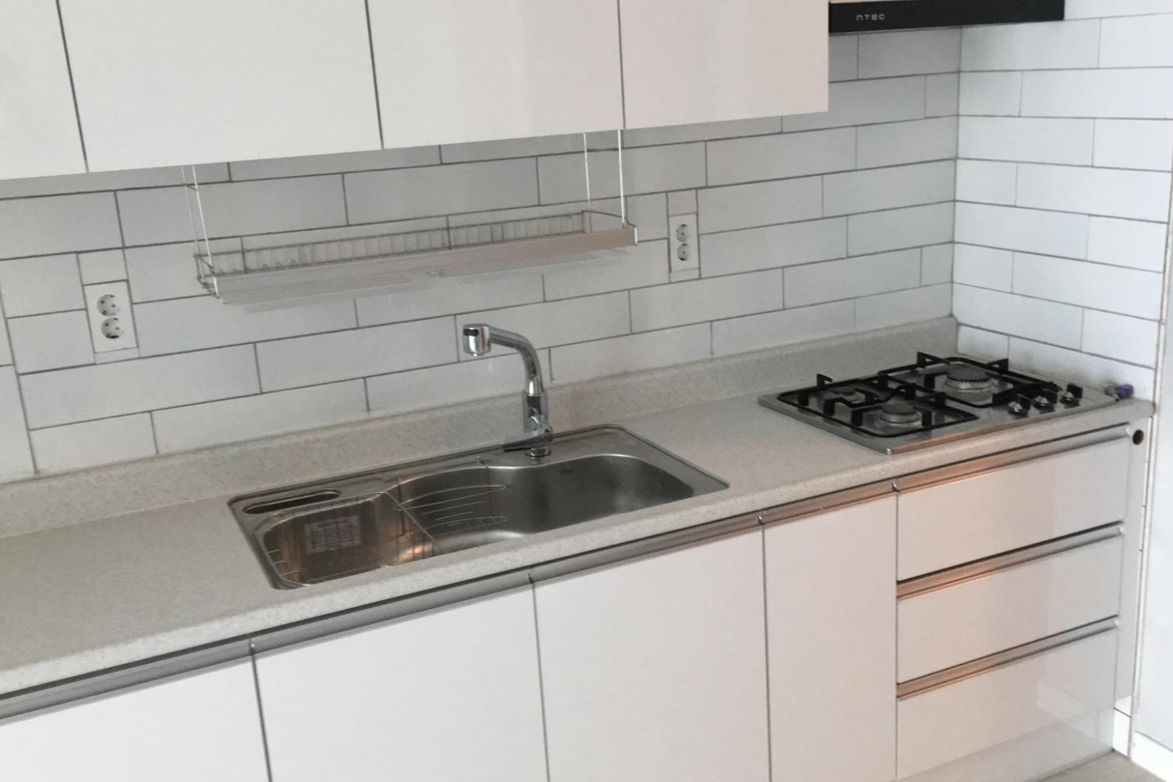 들어가자마자 주방이 있고 안쪽으로 거실이 이어져 있는 구조다.