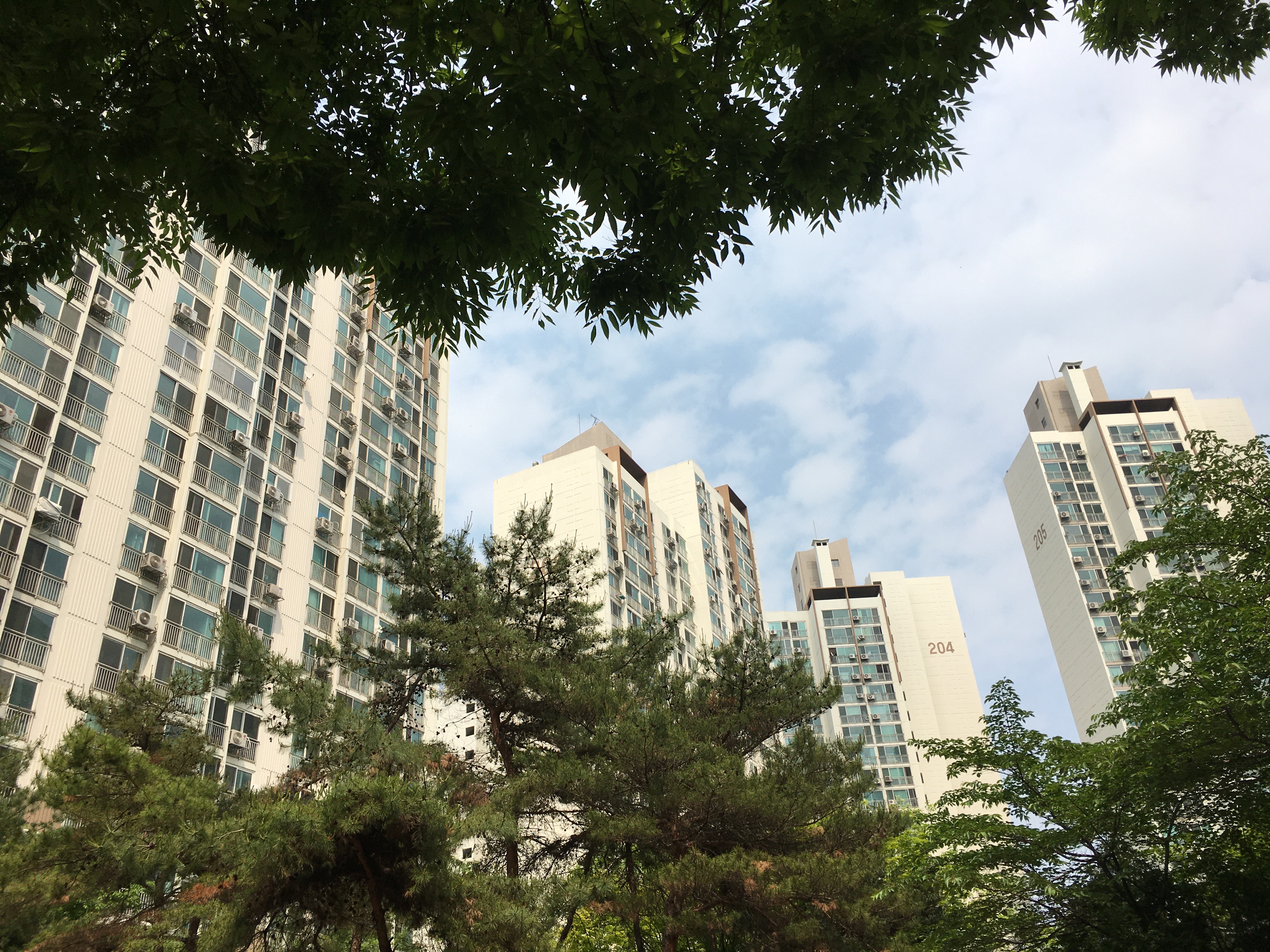 입구를 지나 단지 내부로 계속 걸어 올라갔다. 누군가 반 농담조로 이 아파트는 1층도 전망이 좋다고 했던 말이 기억났다. 듣던 대로 경사가 상당했다. 입주한 지 20년이 다 되어가는 아파트인 것을 감안하면 관리가 꽤 잘 돼 있었다. 큰 나무들이 많았고 나무 그늘 아래에 앉아 쉴 수 있는 공간이 곳곳에 마련돼 있다.