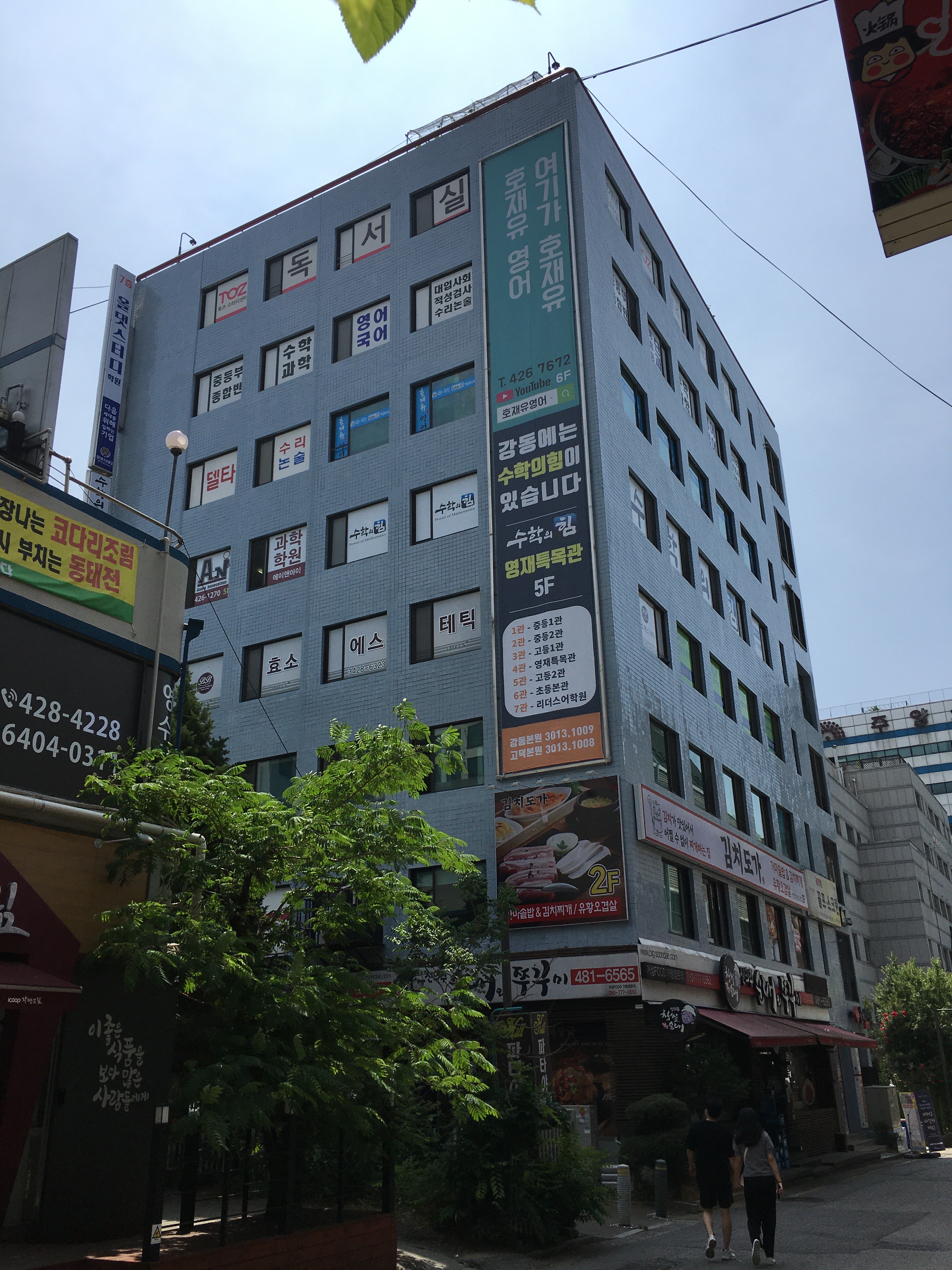 강동구에서 제일 큰 학원가는 고덕역 부근으로, 이마트와 양지빌딩 사이에 있다. 학원가는 식당, 유흥가와 섞여 있는 모습이었다.