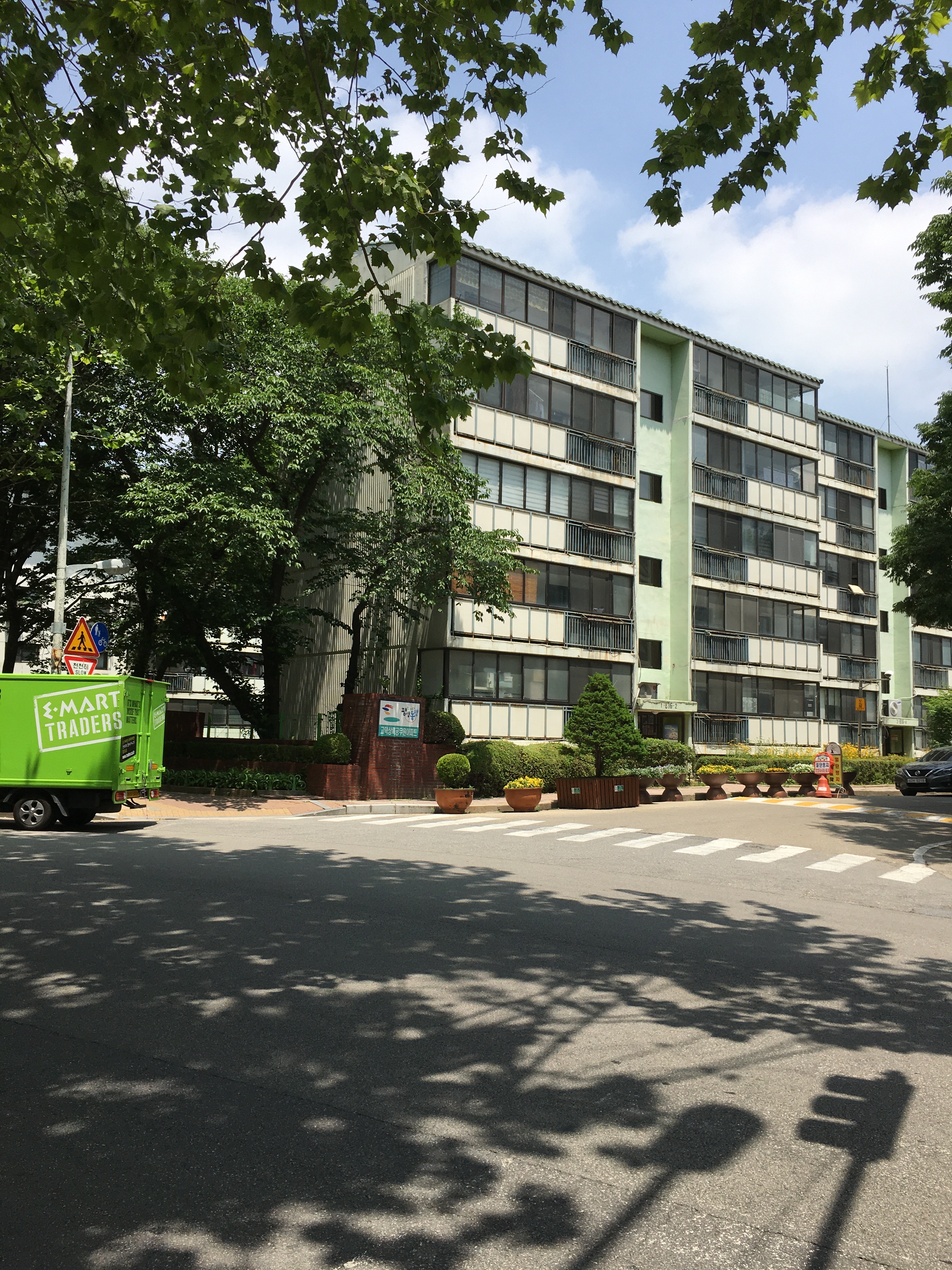 가는 길에 배재고 바로 옆 배재현대아파트에 들렀다. 단지 입구와 18층 꼭대기층 복도에서 바라본 전망이다. 문이 닫혀 들어가 보지 못한 배재중·고등학교 교정이 바로 앞에 보였다. 멀리 삼익그린2차 아파트 단지도 보인다. 배재현대아파트는 오래된 복도식 아파트지만 관리가 꽤 잘 되고 있다는 느낌을 받았다. 단지 밖으로 나와 길을 건너 고덕상록아파트로 이동했다.