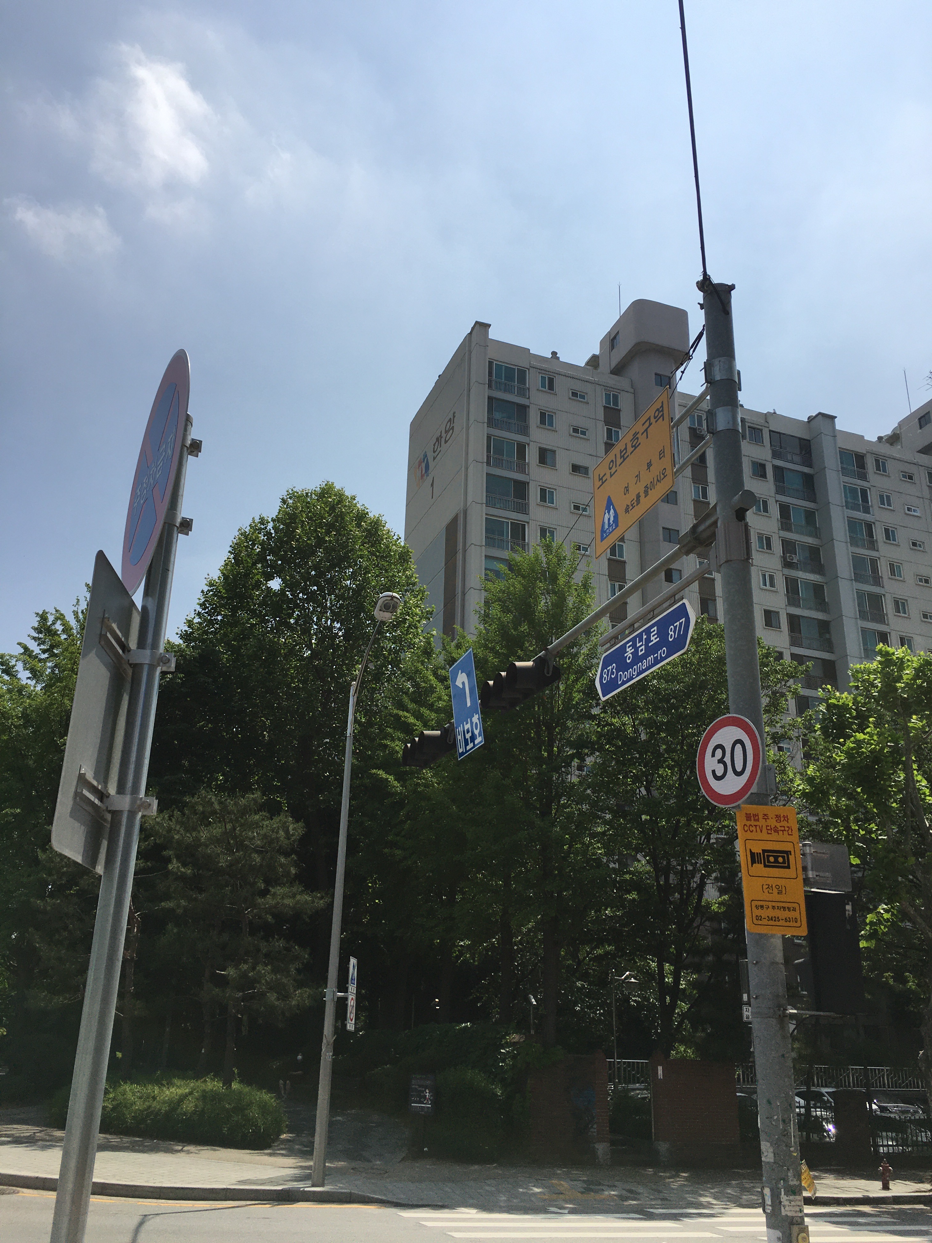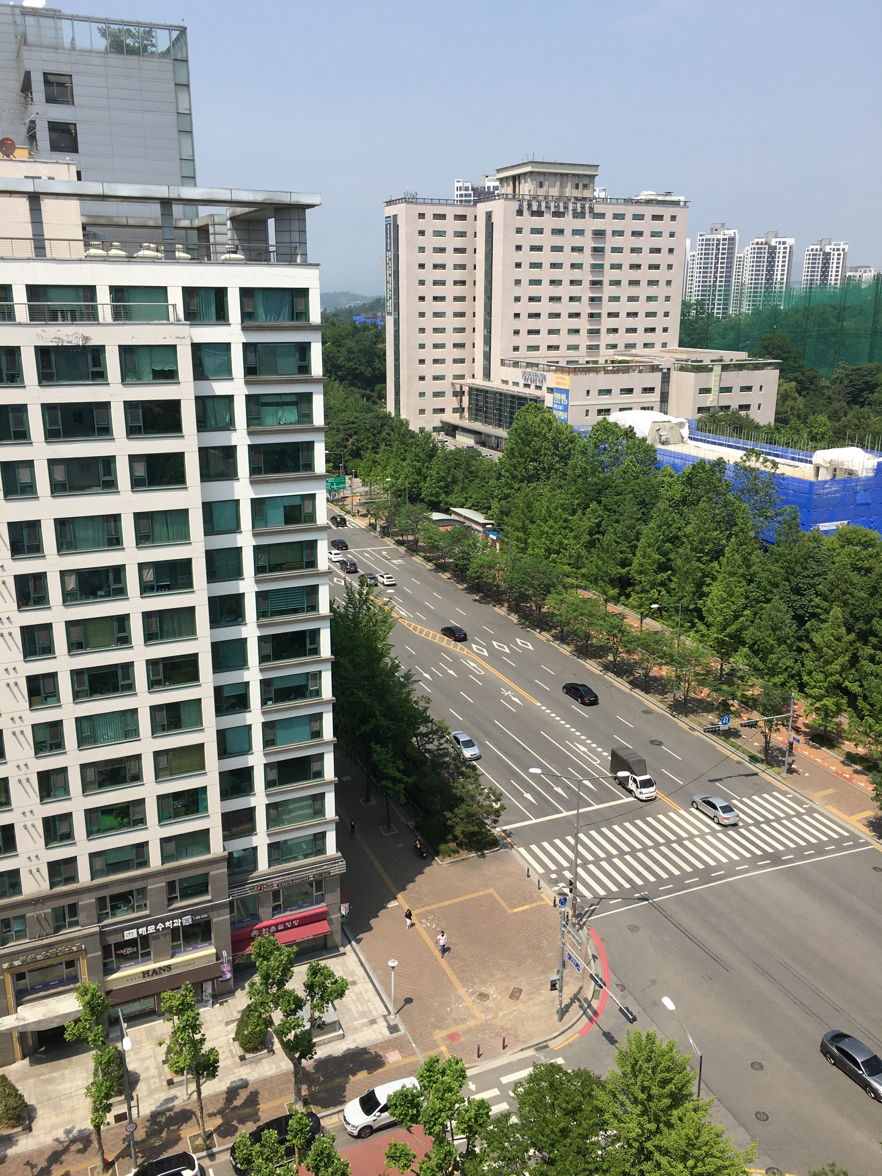 양지빌딩 주변 학원가를 빠져나와 명일한양아파트로 향했다. 길 건너편에 강동경희대병원이 보였다.