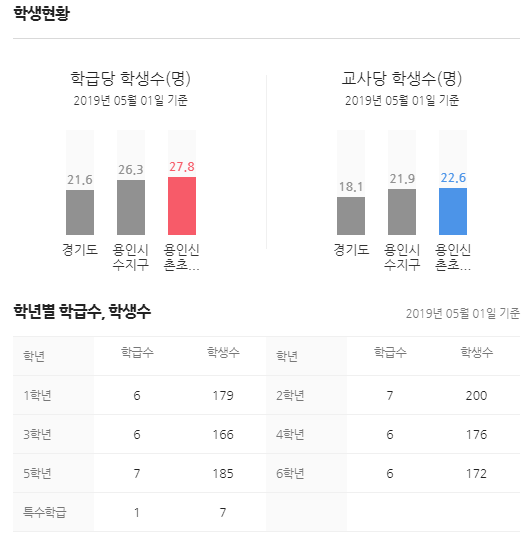 저학년 학생수와 고학년 학생 수에 큰 차이가 없다. 학생이 빠져나가지도 들어오지도 않는 무난한 학교로 보인다.