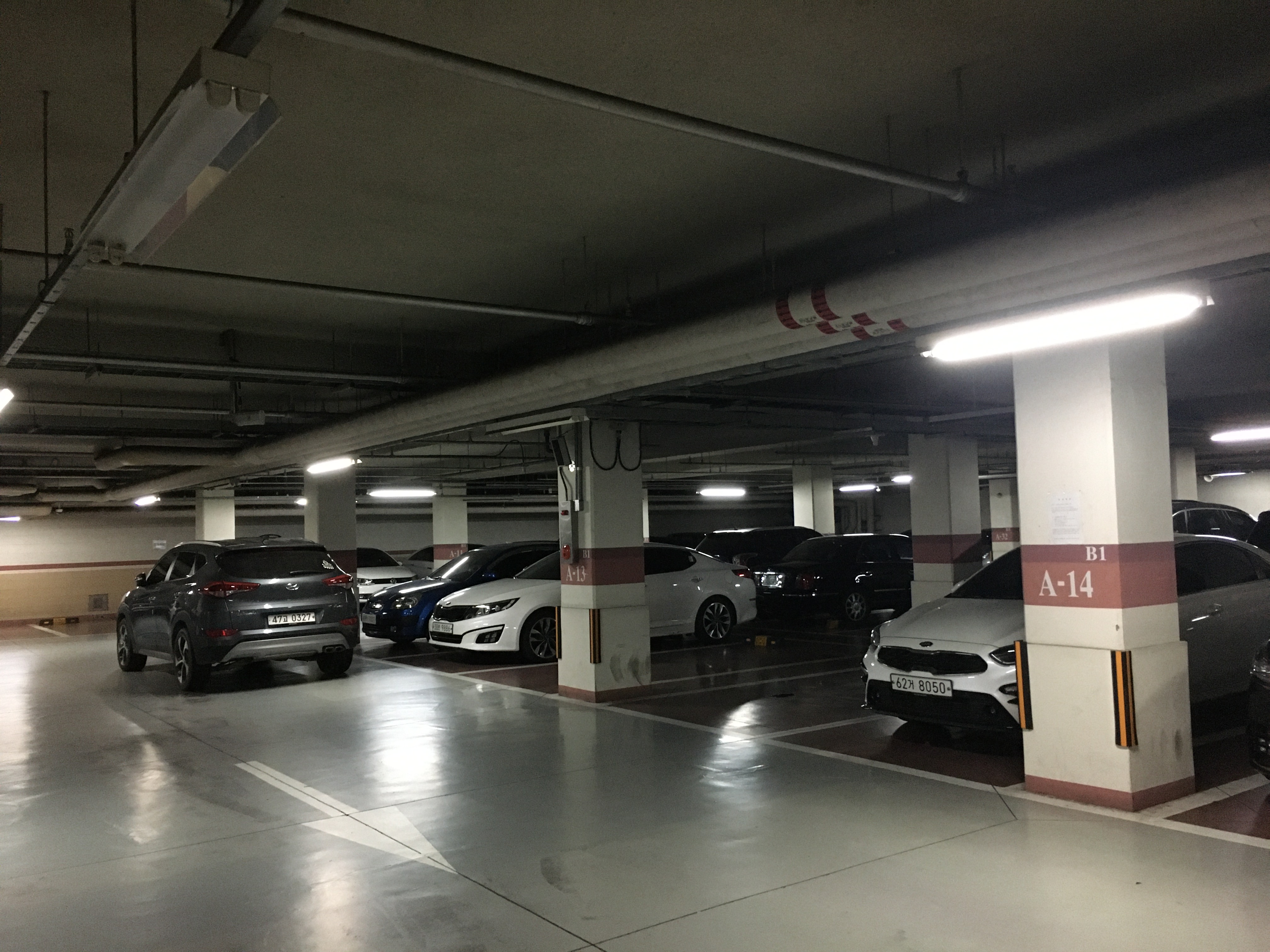 431동과 434동이 함께 쓰는 지하주차장으로 들어갔다. 일요일 오전임을 감안해도 빈자리가 꽤 보일 정도로 여유로워 보였다. 지하주차장도 칠 작업을 하고 있었다. 입주 후 15년 정도 된 구축임에도 건물 내부로 연결되는 엘리베이터가 있었다. 호갱노노 리뷰를 보니 주민들이 이 부분을 단지의 큰 장점 중 하나로 생각하는 것 같았다.