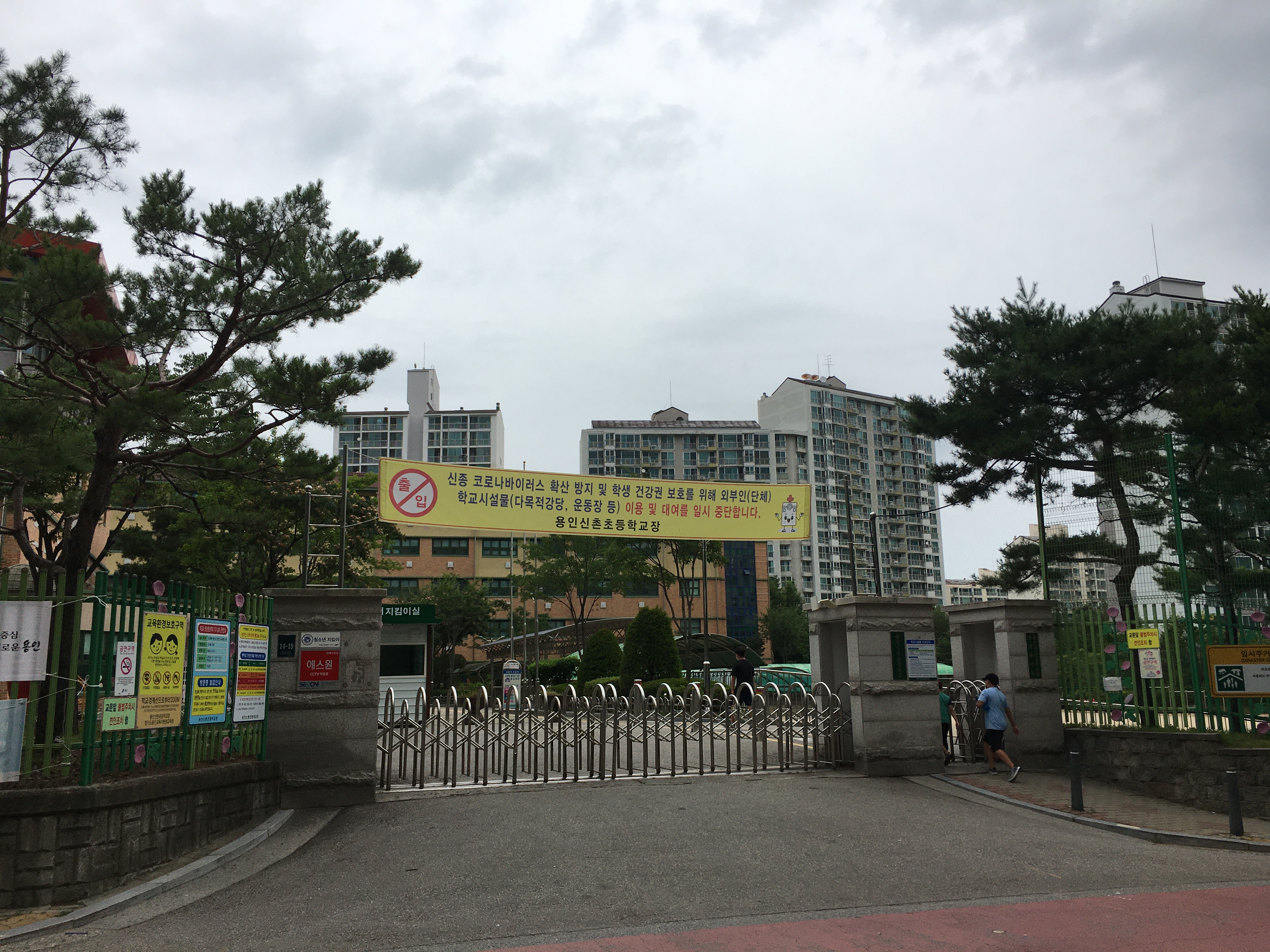 건너편 신촌초등학교 정문이다. 일요일에도 한쪽 문이 개방돼 있었다. 야구배트와 글러브를 든 아이들이 학교 안으로 들어가는 모습을 볼 수 있었다.