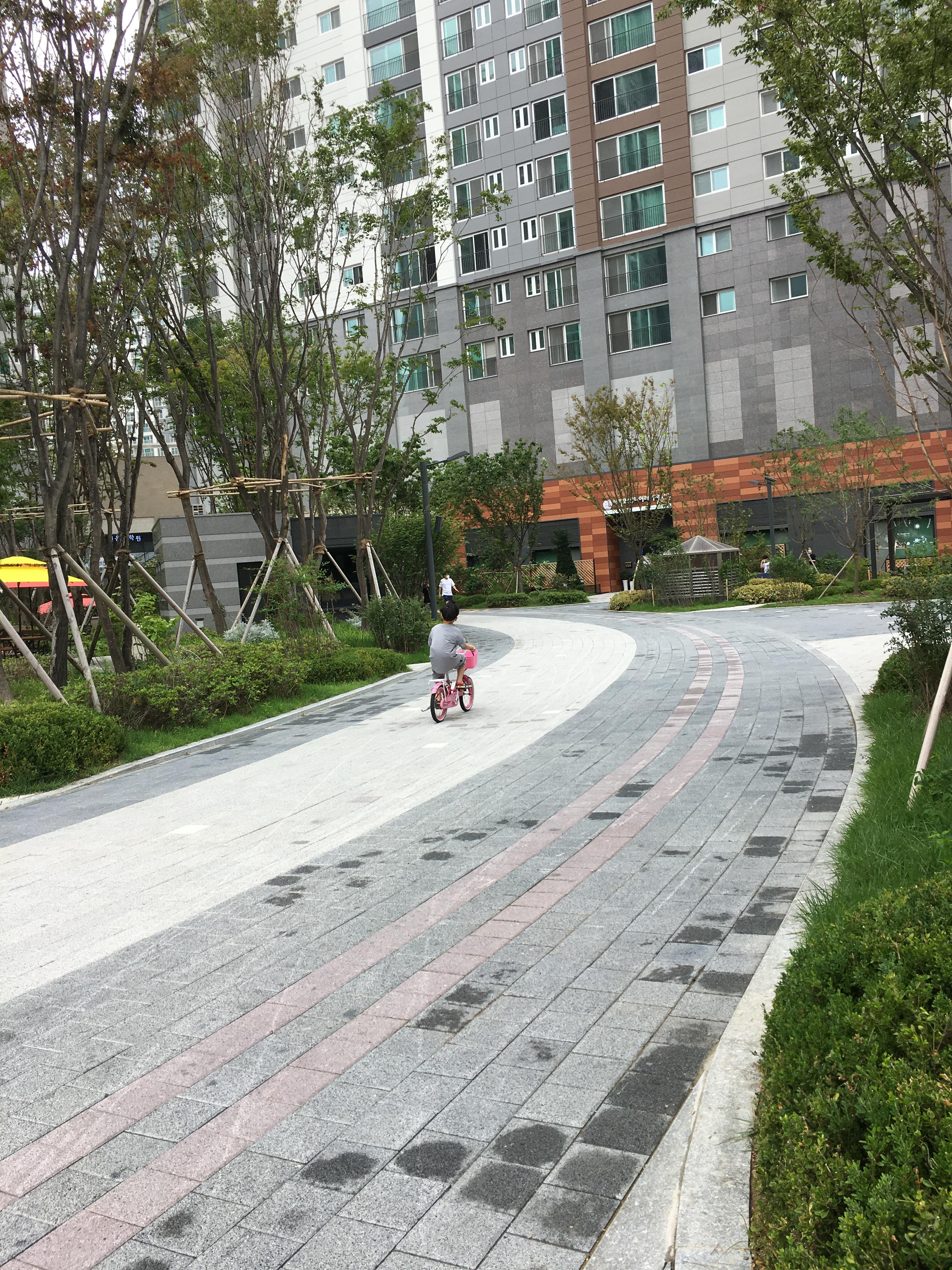 요즘 신축이 다 그렇지만 단지 내 지상으로 차량이 다니지 않는다. 그래서인지 여유롭게 자전거를 타고 다니는 아이들이 많이 보였다.