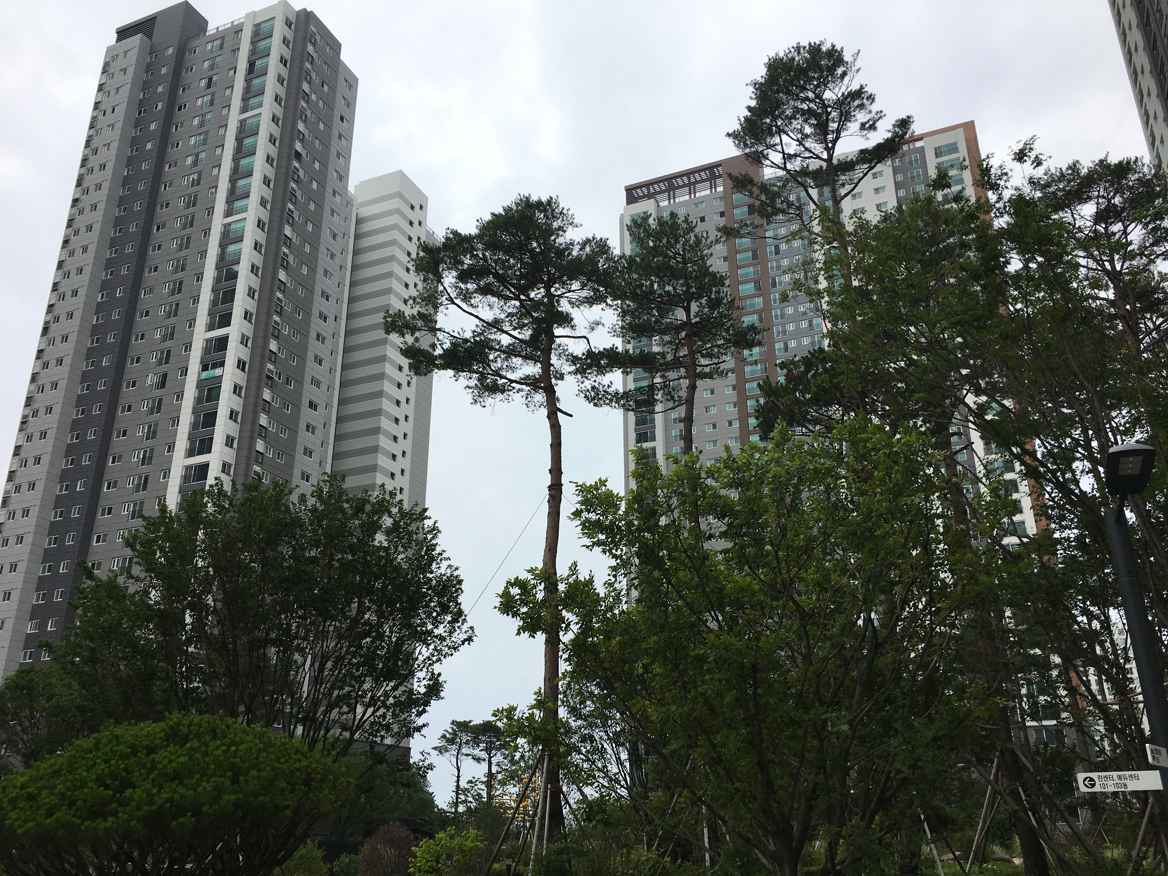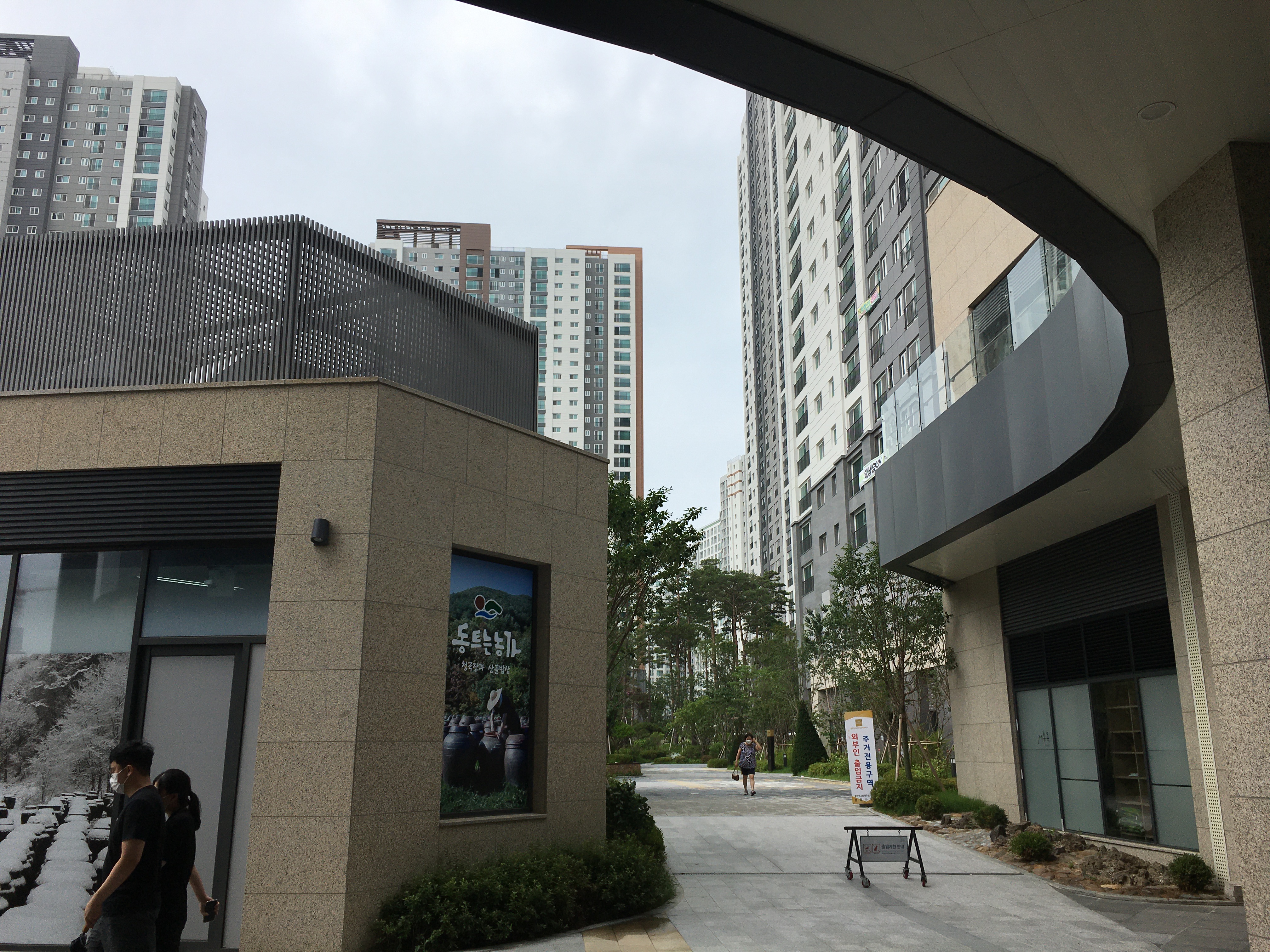 상가에서 자연스럽게 아파트 단지 내부로 들어갈 수 있었다. "주거 전용구역, 외부인 출입금지"라는 입간판이 서 있었다. 상가에 쇼핑하려 왔다가 단지까지 구경하고 가는 사람들이 많은가 보다.