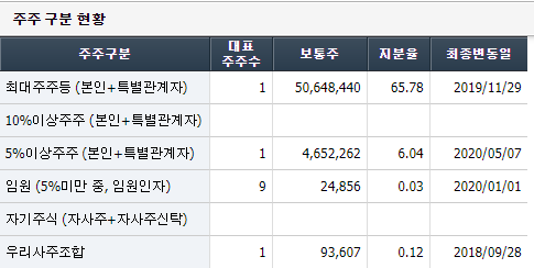 그런데 자기주식이 하나도 없다. 그래서 기업가치 2조2,979억원을 발행 주식 수 77,000,000주로 바로 나눈다.