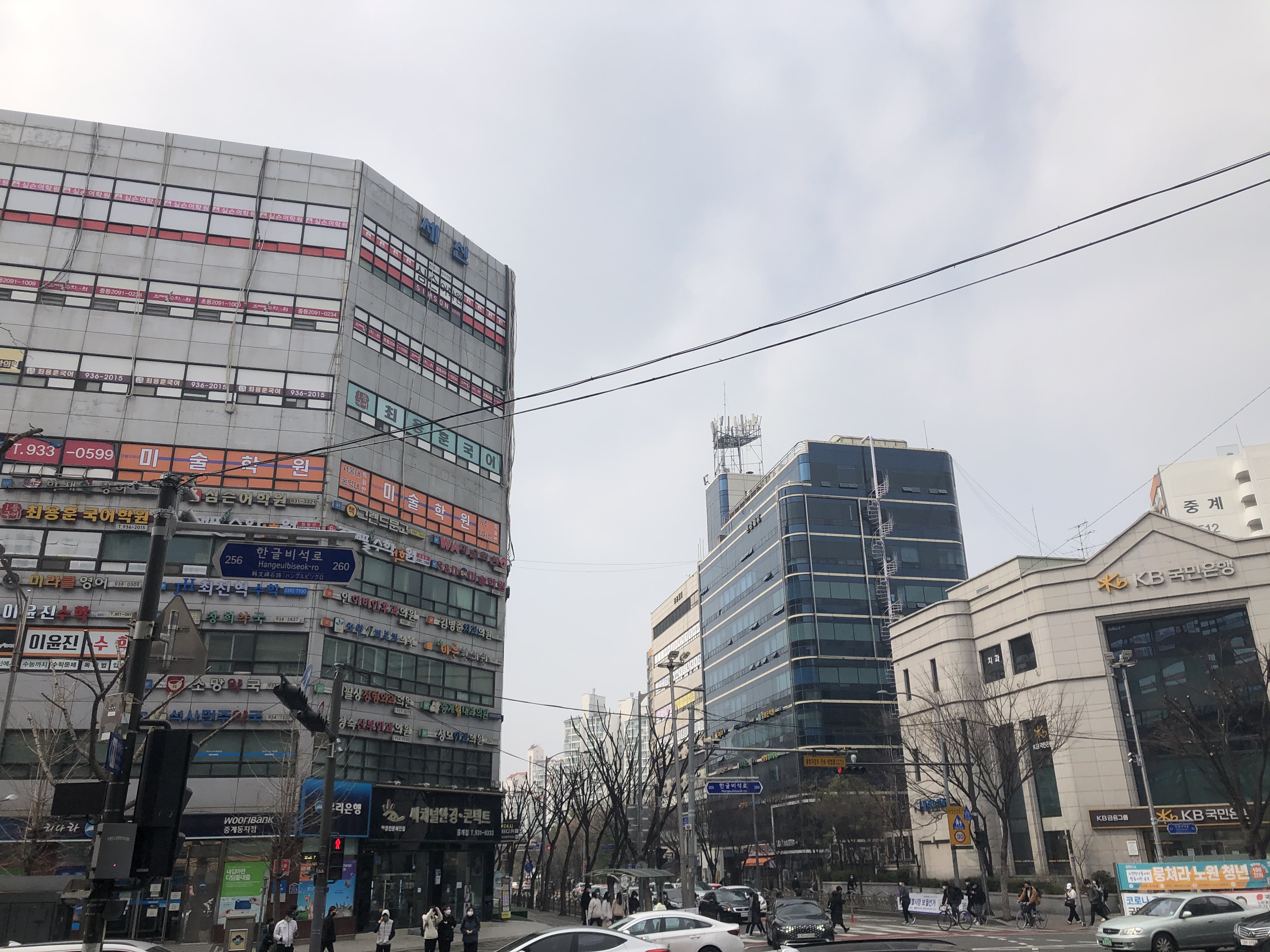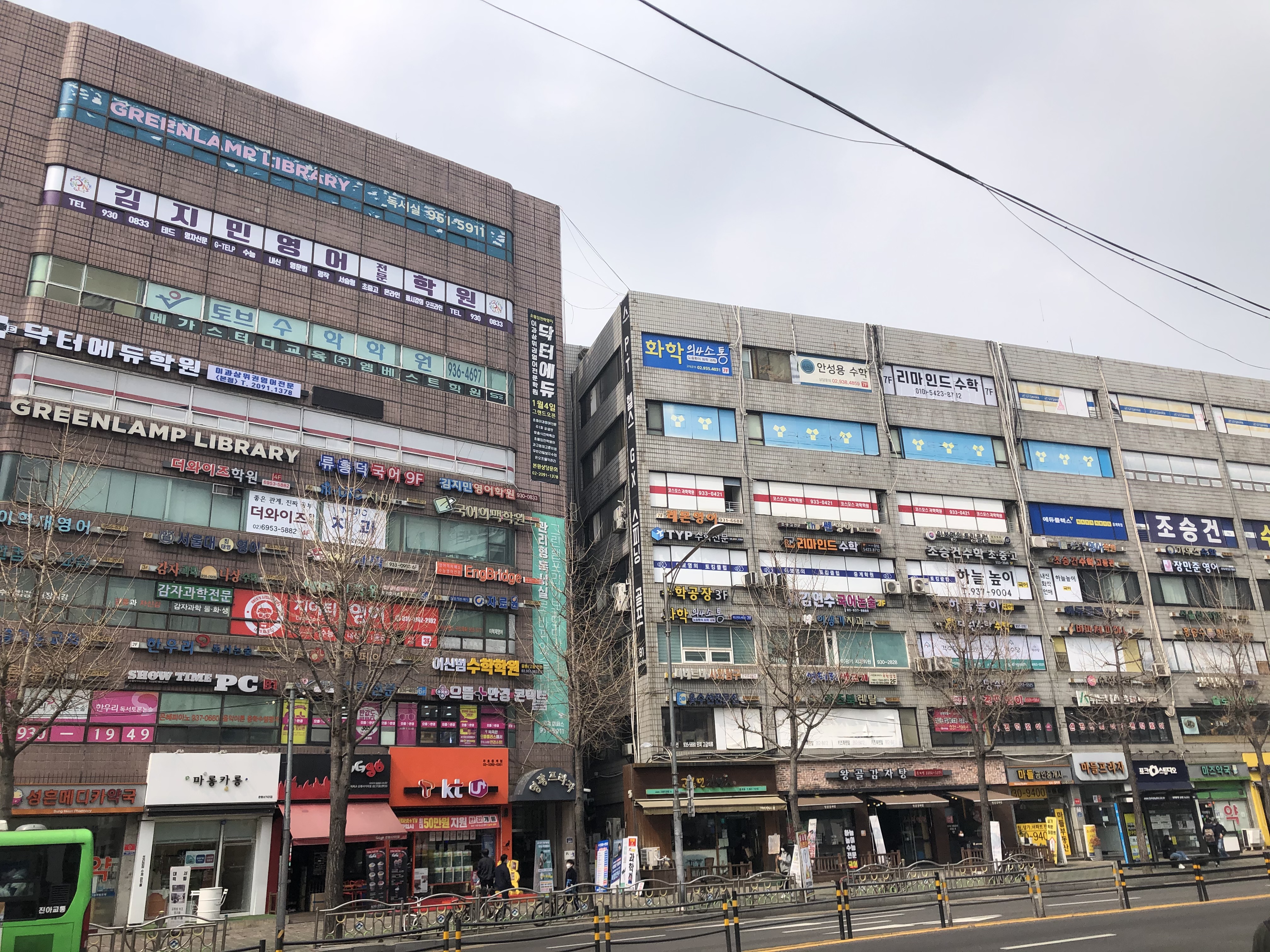 단지를 빠져나와 그 유명한 은행사거리 학원가를 대강 둘러봤다. 사거리 모퉁이에 국민은행을 비롯한 주요 은행 지점들이 들어서 있는 것이 눈에 띄었다. 주변 어디를 둘어봐도 모두 학원 건물이었다. 장관이었지만 건물이 노후해서인지 평촌 학원가보다는 위압감이 덜했다.