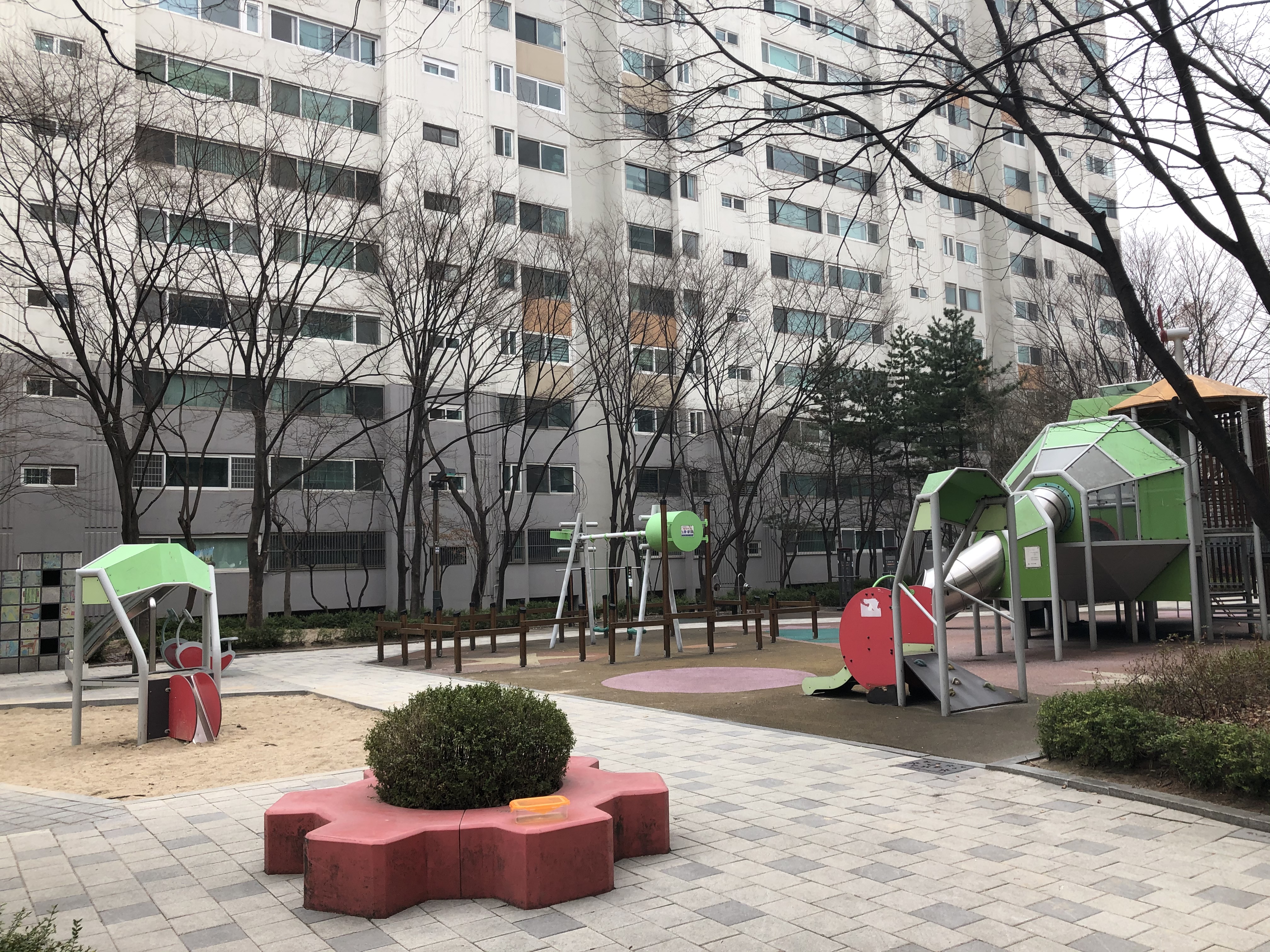 아래 사진과 같이 아기자기한 조경과 리모델링한 것으로 보이는 놀이터가 보기에 좋았다.