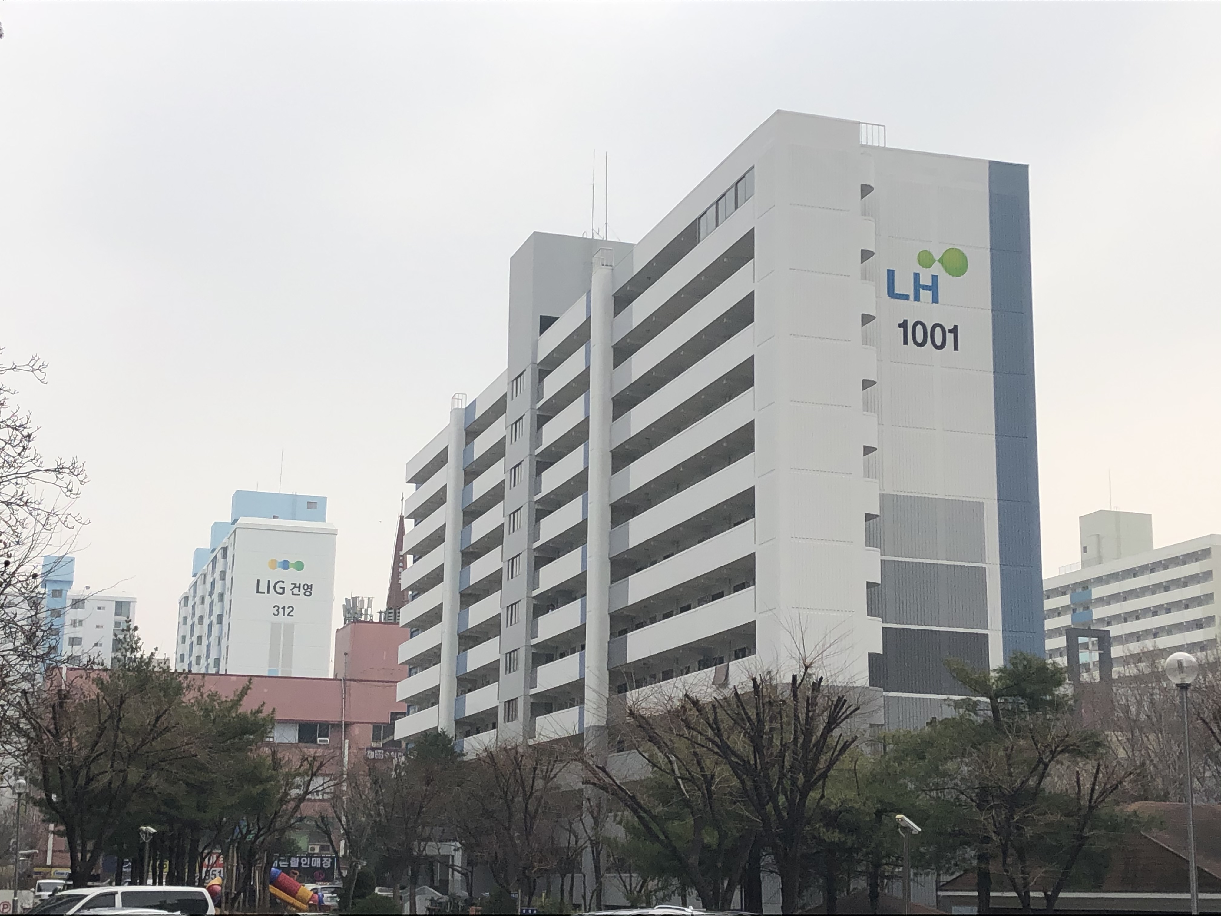 지상에 이중 주차된 차량이 간혹 보였지만 지하 주차장은 꽤 여유있어 보였다. 총 주차 대수는 1,075대(세대당 1.13대)다.