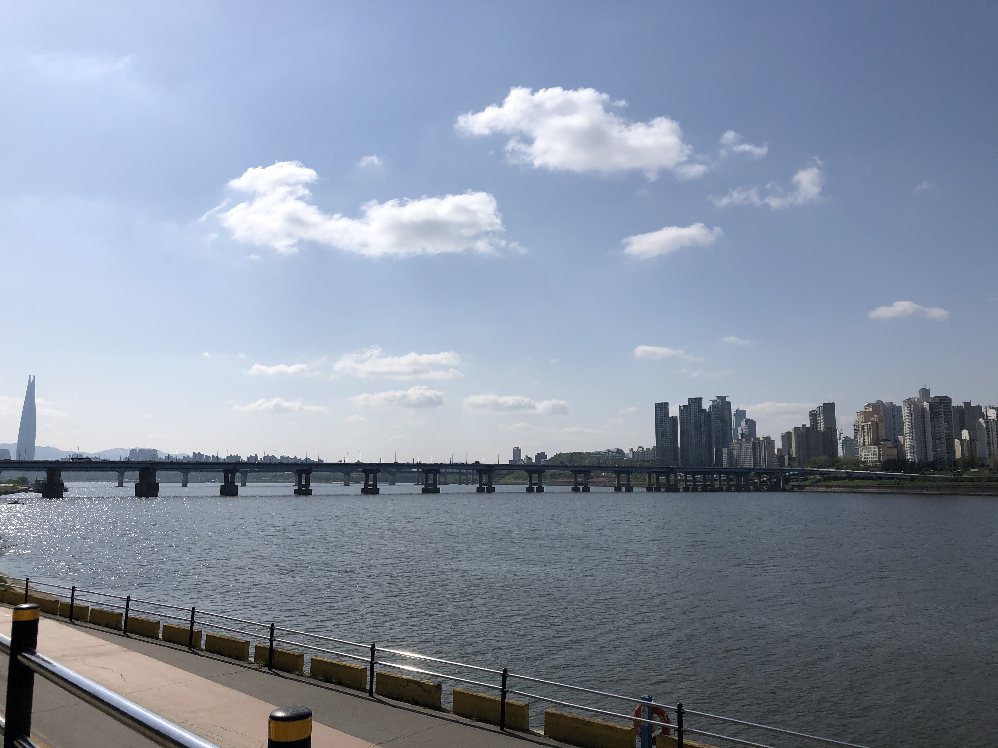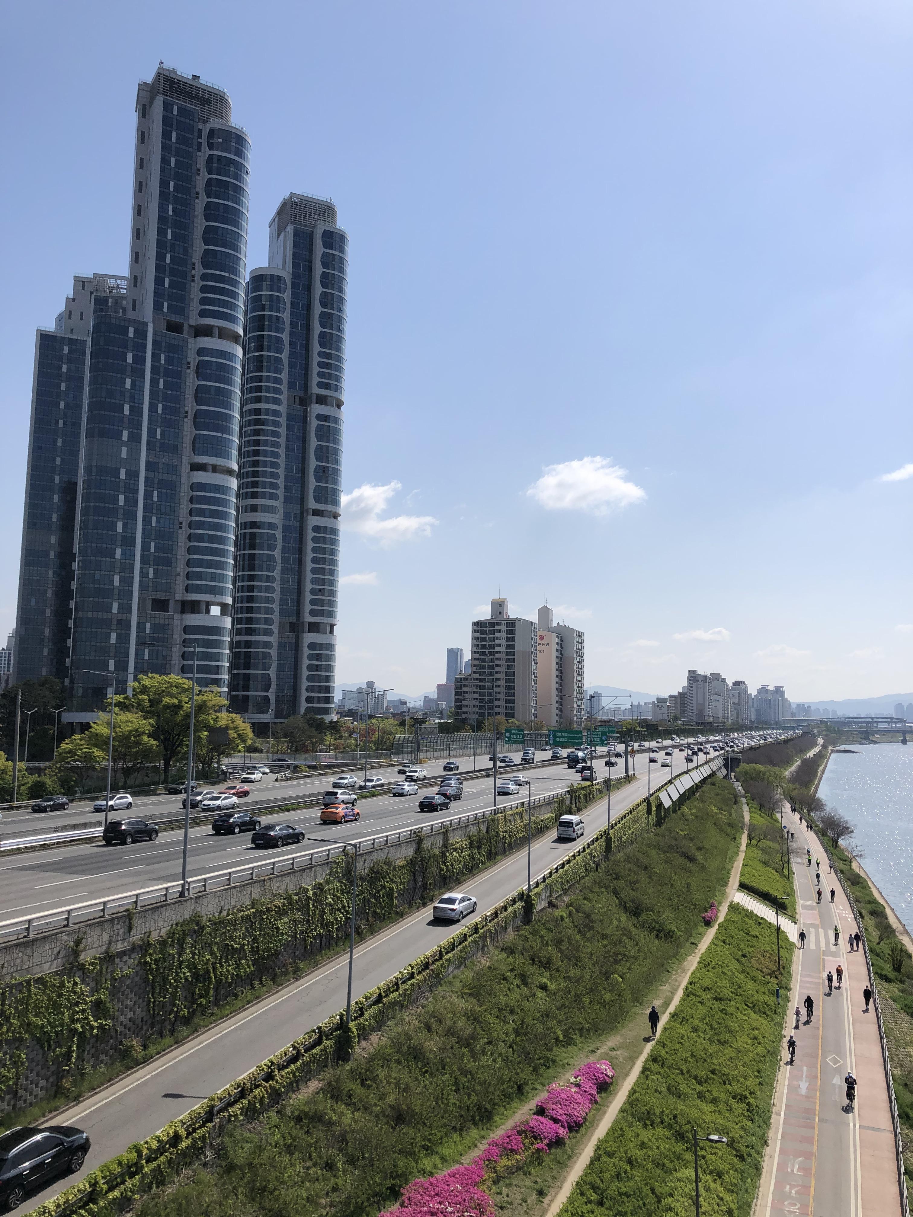 나들목 통로를 빠져나오면 왼쪽으로 영동대교와 저 멀리 롯데타워가 보인다. 고개를 오른쪽으로 돌리면 성수대교가 보이고 그 뒤로 압구정현대아파트, 남산타워까지 보인다. 마침 미세먼지도 거의 없고 날씨가 너무 좋아서 정말 임장이 아니라 여행을 온 기분이었다. 한강한신아파트 거실에서 내려다 보이는 뷰도 이 모습과 크게 다르지 않을 듯하다.