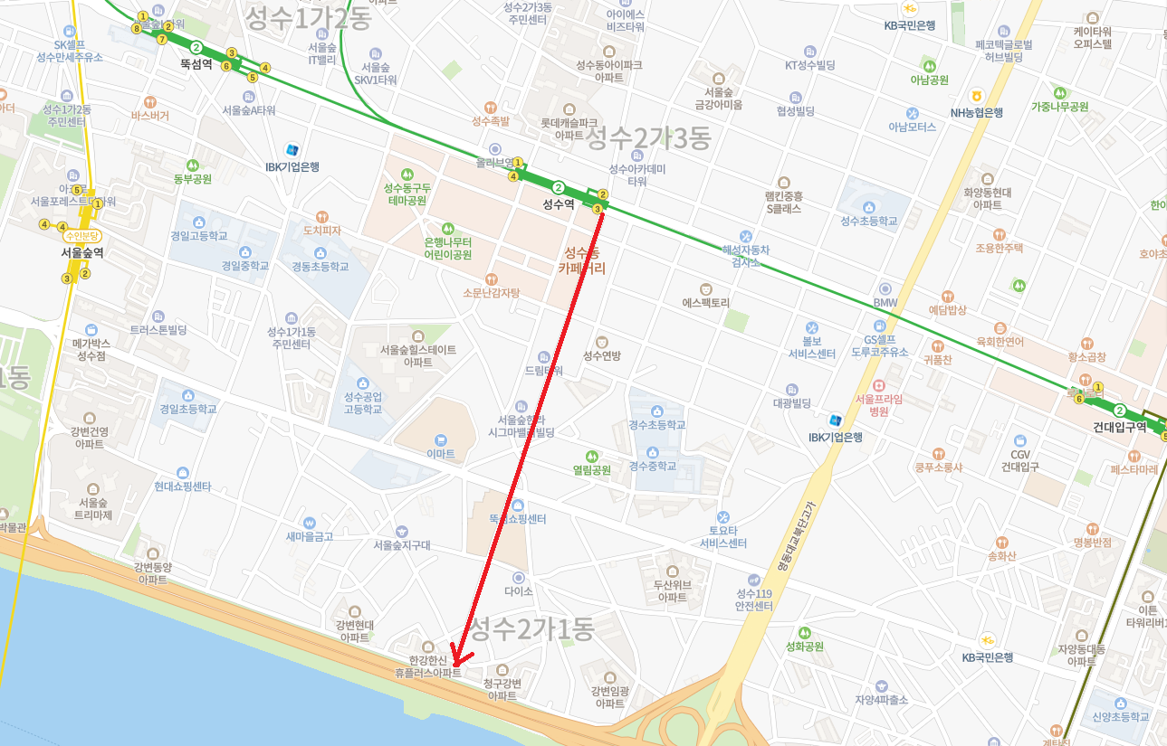 지난 목요일(2021-04-16) 신문 리뷰에서 성수전략정비구역 재개발 관련 기사를 다뤘다. 해당 기사에서 2지구 한강한신아파트의 최고가 거래 소식이 전해졌다. 최근 다녀온 임장은 대부분 사전 준비를 철저히 하고 동선까지 그려 넣은 지도를 출력해서 다녀왔다. 이번 임장은 한강변으로 소풍 가는 기분으로 가볍게 다녀왔다.