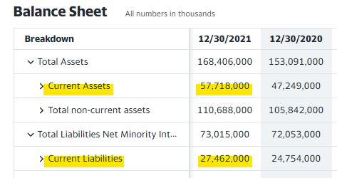인텔을 계속 유지 또는 추가 매수해도 될지 재무제표 분석을 통해 알아보려 한다. 먼저 Balance Sheet(재무상태표)에서 유동비율, 당좌비율, 부채비율을 확인해보겠다.
