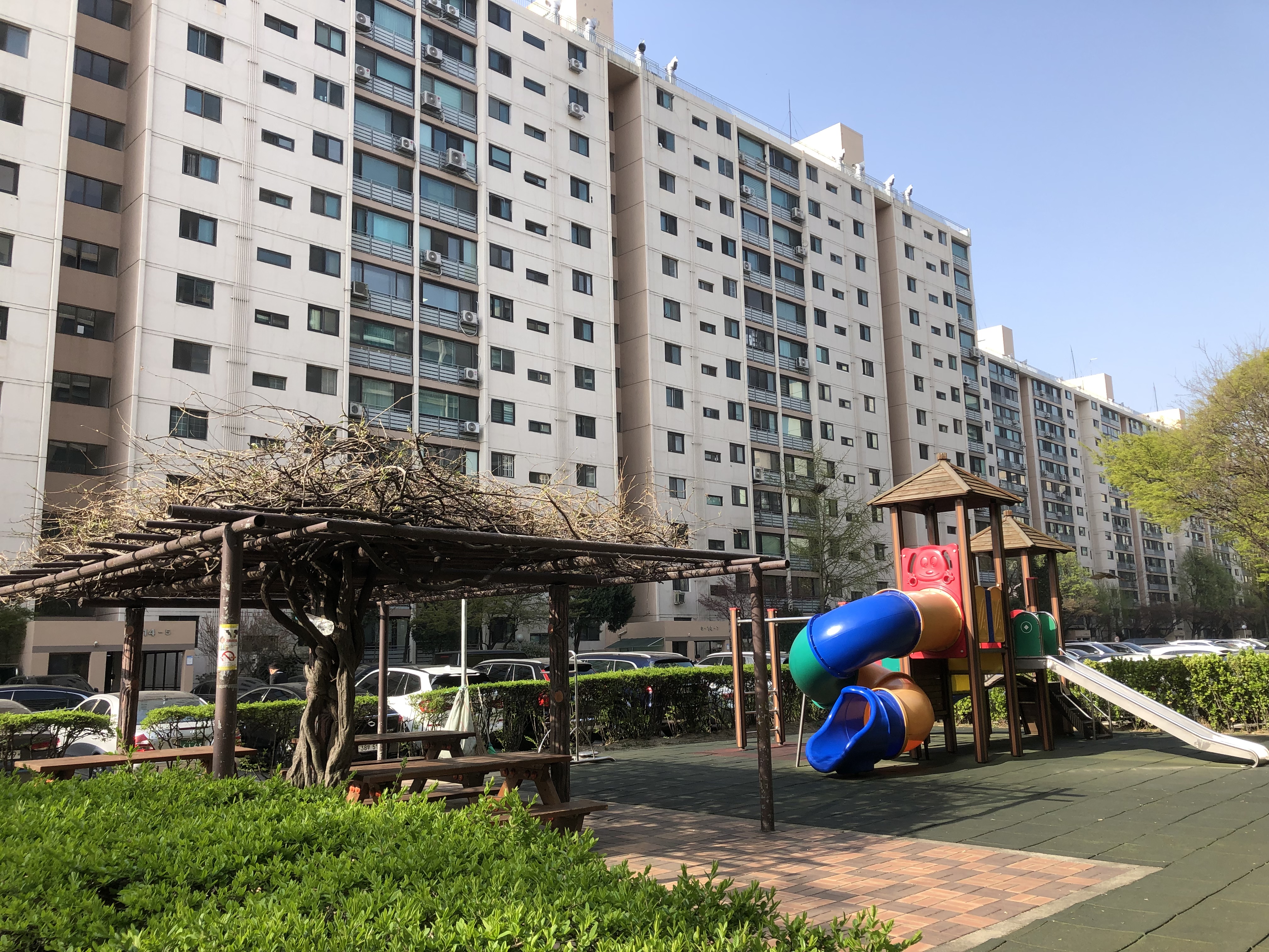 놀이터도 리모델링을 한 것 같다. 모래 바닥에 철제 미끄럼틀을 생각했는데 신축 놀이터와 다를 바 없이 깔끔했다. 놀이터 옆 벤치에 앉아 집에 싸 온 간식을 먹고 숨을 돌렸다. 신동아 아파트 이야기는 대강 끝났는데 이대로 마무리하기엔 아쉬워서 잠수교를 통해 아리팍으로 이동한 경로에 대한 설명을 좀 더 하겠다.